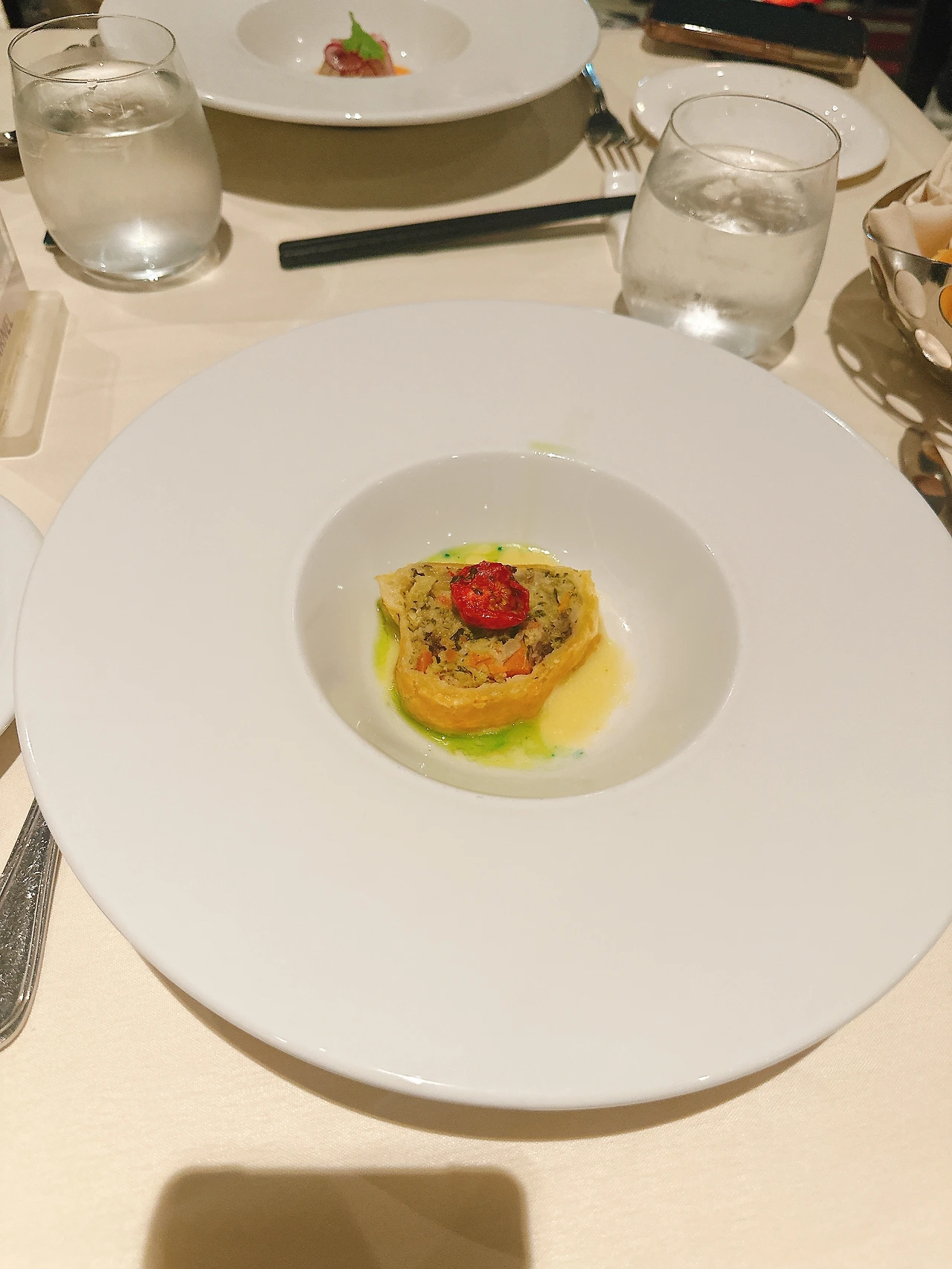 같은 날 저녁 우리는 정찬 레스토랑도 이용해 봤다. 정찬레스토랑의 경우 4곳 중에 우리에게 지정된 레스토랑을 이용해야 하며, 자리와 시간도 정해져 있다. 그렇지 않은 크루즈 선사도 있지만 우리가 이용한 벨리시마는 지정한 테이블에서 이른 저녁 혹은 늦은 저녁 선택하여 이용하는 형태였고 우린 이른 저녁을 선호하기에 5시에 저녁식사를 하러 갔다.