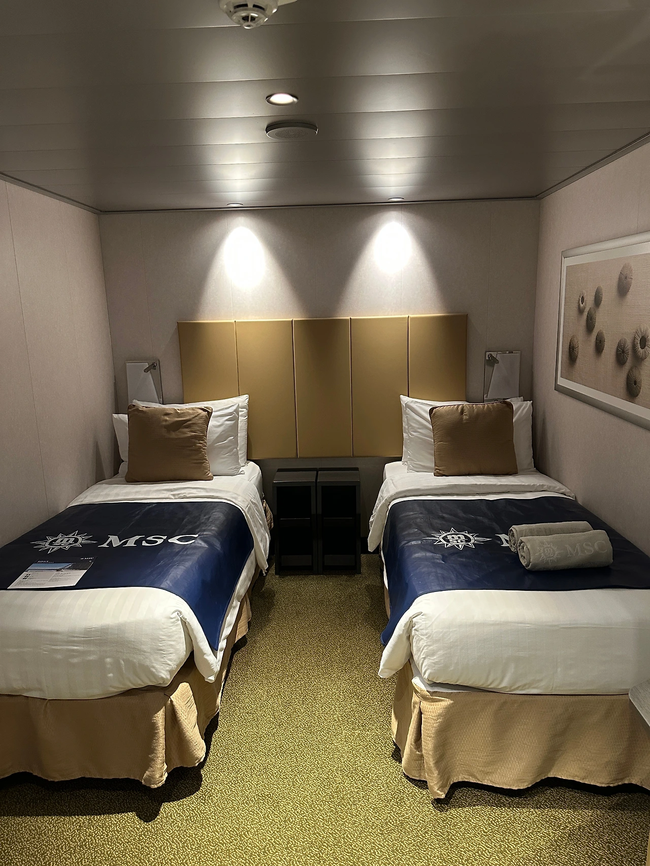 한 바퀴 둘러보고 난 후, 12층에 있는 우리 방으로 가보았다. 창문도 없는 내측 방이었지만 생각보다 넓었고, 그리 답답한 느낌도 들지 않았다. 무엇보다 배라고 생각이 들지 않을 만큼 움직임도 없이 고요했다. 우리는 안심한 뒤 식사를 위해 뷔페로 향했다.