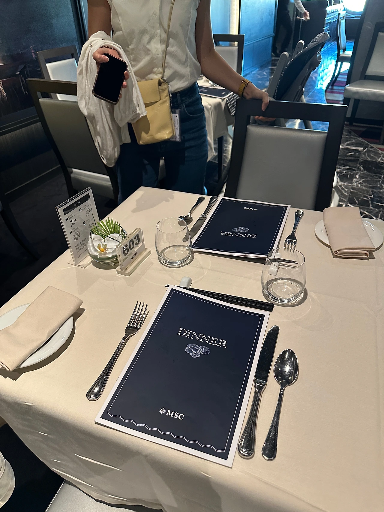 정찬 레스토랑의 경우 아무래도 직접 음식을 서빙하고, 식사인원이 많다 보니 음식이 나오는 시간이 다소 길어지기도 하기 때문에 식사시간에 여유를 가지고 와야 한다. 또한 드레스코드가 정해진 경우도 있어서 이를 신경 쓰지 않으면 입장이 제한되기도 한다. 그러나 우리가 탑승한 MSC는 캐주얼한 크루즈로 알려져 있어서 복장에 크게 까다롭진 않았다.