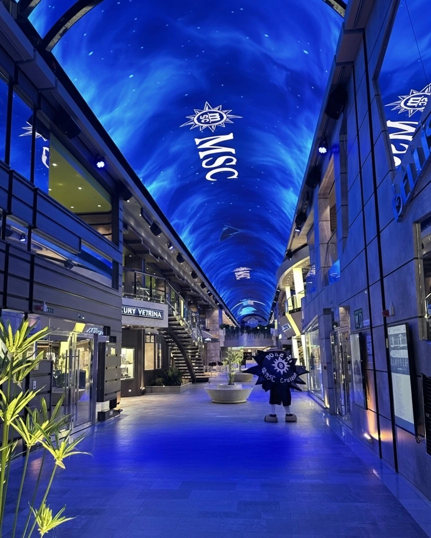 승선하자마자 우리를 반겨주는 크리스털 장식의 중앙 리셉션홀부터 시작해서, 인천 인스파이어의 그곳이 생각나는 쇼핑몰과 스페셜티 레스토랑 거리, 배의 앞뒤 양 끝에는 밤마다 펼쳐지는 다양한 공연을 위한 공연장, 곳곳에 좋은 전망을 갖춘 라운지까지 완벽했다.