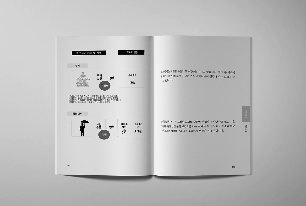 개인의 재무상황을 진단하고, 돈과 관련된 계획과 처방을 담은 개인 맞춤형 책입니다.