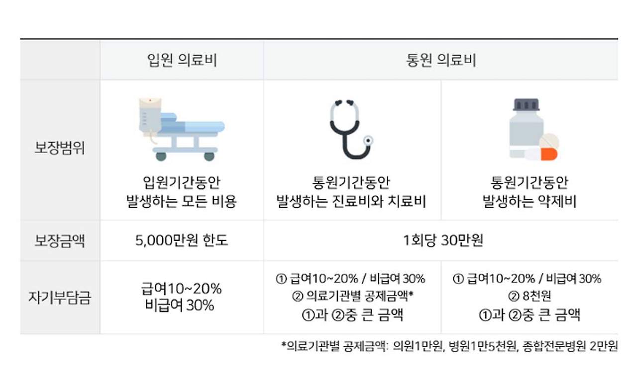 총 의료비 = 자기부담금(10~30%) + 보험금(70~90%)