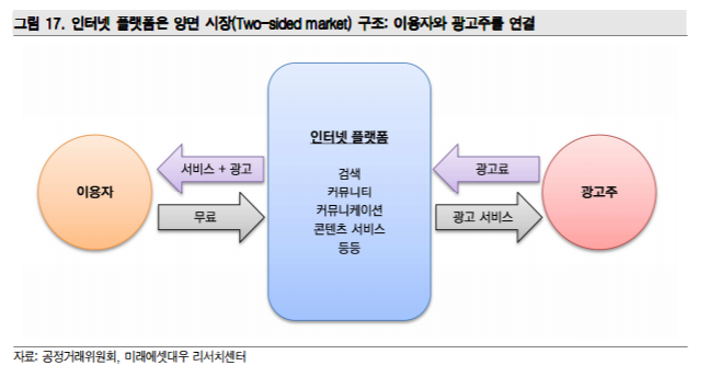 문제는 많은 플랫폼 서비스가 높은 트래픽을 보유하고 있지만, 뚜렷한 수익모델을 찾지 못한다. 이 때 플랫폼 기업들은 일반적으로 자사 플랫폼에 광고를 붙이는 방식을 선택한다. 사실 이 수익모델도 이용자와 광고주를 연결한다는 부분에서 플랫폼 서비스 본질과 같다.