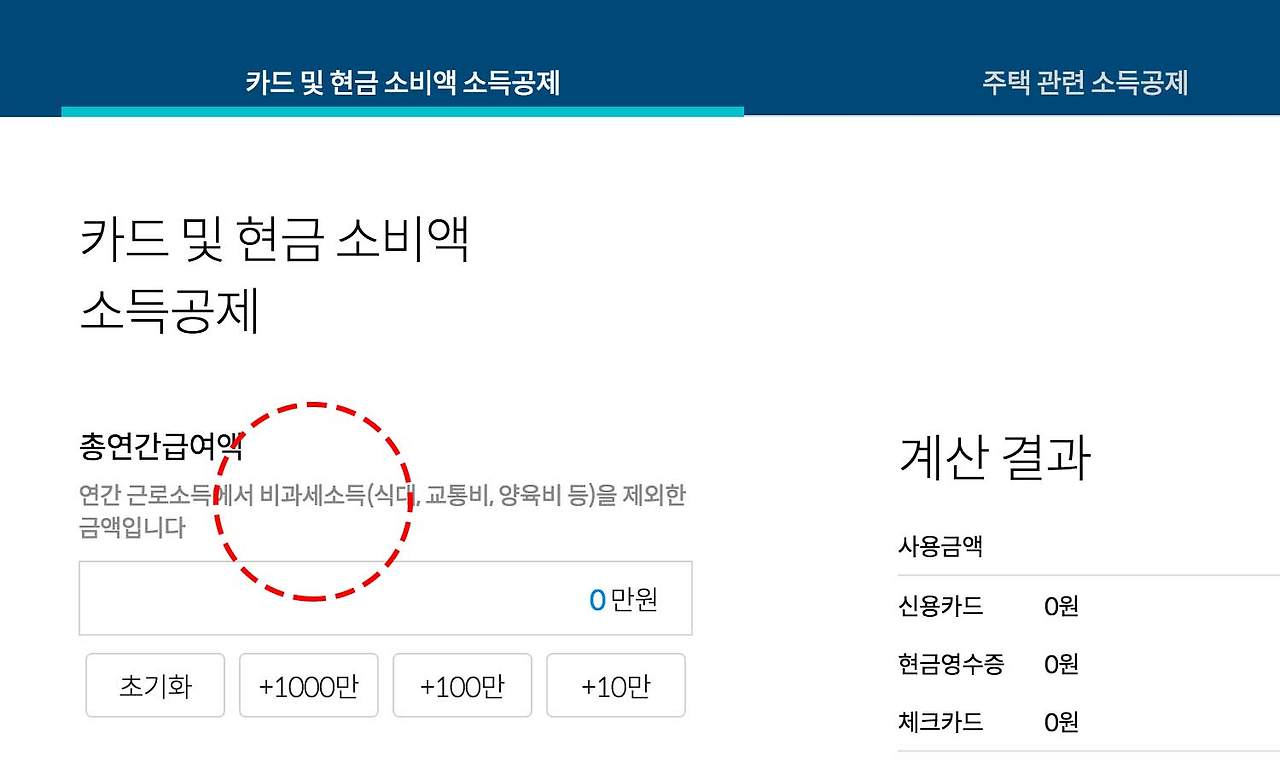 2,880만원의 25%인 720만원을 초과하는 금액부터 소득공제가 해당되니, 카드든 현금이든 총 합쳐서 720만원 이상 사용했다면 공제받을 수 있다. 공제율이 높은 체크카드와 현금영수증 사용금액부터 공제에 들어가게 되어, 1년에 1천만원을 썼다고 가정한다면 720만원을 제외한 280만원이 공제 가능 금액이 된다.