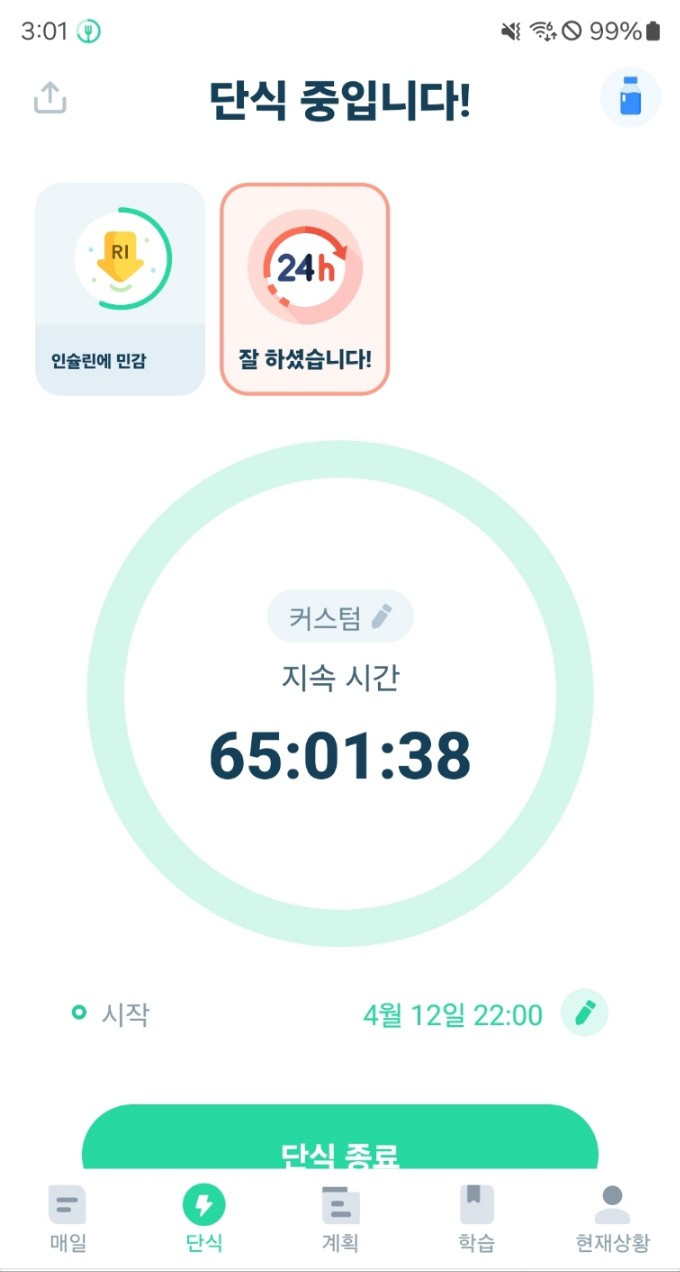 72시간을 계획했는데 아쉽게도 65시간 단식으로 끝마쳤지만, 그래도 처음 해보는 단식에 의의를 둔다. 살은 대략 3kg 정도가 빠졌다. 안 좋은 습관을 과감히 끊어내고 싶을 때 단식을 해보면 좋을 것 같다. 이도저도 아닐 때 뭔가 애매할 때는 강경한 행동이 새로운 시작에 큰 힘이 되는 듯 같다. 현재 위는 다시 많이 줄어서 앞으로 적절한 식사양과 의식적인 건강한 식단으로 2024년을 보내려 한다.
