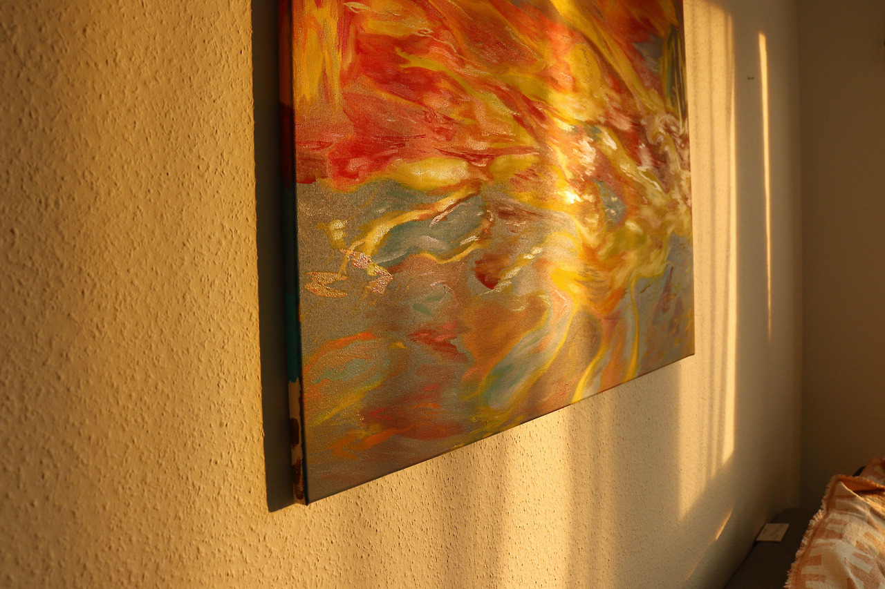사물의 형태에서 벗어나 고정되지 않은 빛을 찾아 그린다. 그중 일몰 시리즈는 빛이 바다 위로 하강하며 얼마나 많은 색이 사라지고 떠오르는지 기록하듯 그린 그림이다. 아침에 떠오른 빛과 일몰이 함께 공간에서 흐르고 있다. 오랜만에 느껴보는 충만한 아름다움과 황홀한 빛이었다.