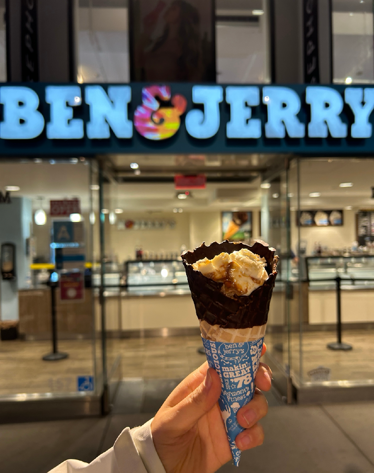 저녁에도 쌀쌀한 바람이 부는 정도라 겨울에 여행 가기 좋은 날씨였다. 벤앤제리스 아이스크림을 사 먹을 때는 고환율의 영향을 체감할 수 있었다. 한국에서도 벤앤제리스 아이스크림을 접할 수는 있지만, 매장에서 콘과 아이스크림 종류를 골라서 맛보는 재미가 있었다. 아이스크림은 진하고 부드러우며, 콘은 바삭해서 좋았다.