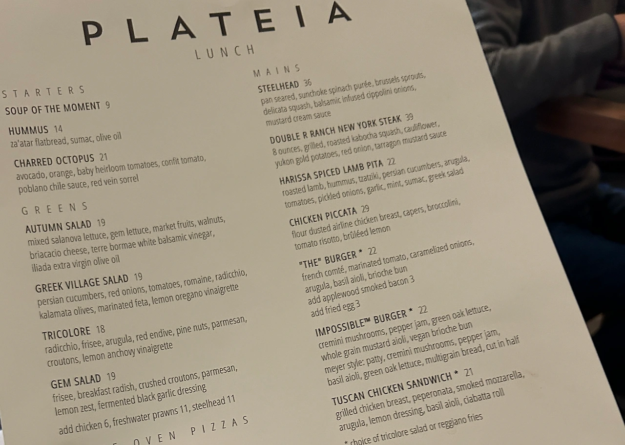 UCLA 캠퍼스 안에 있는 PLATEIA는 지중해식 음식점이다.