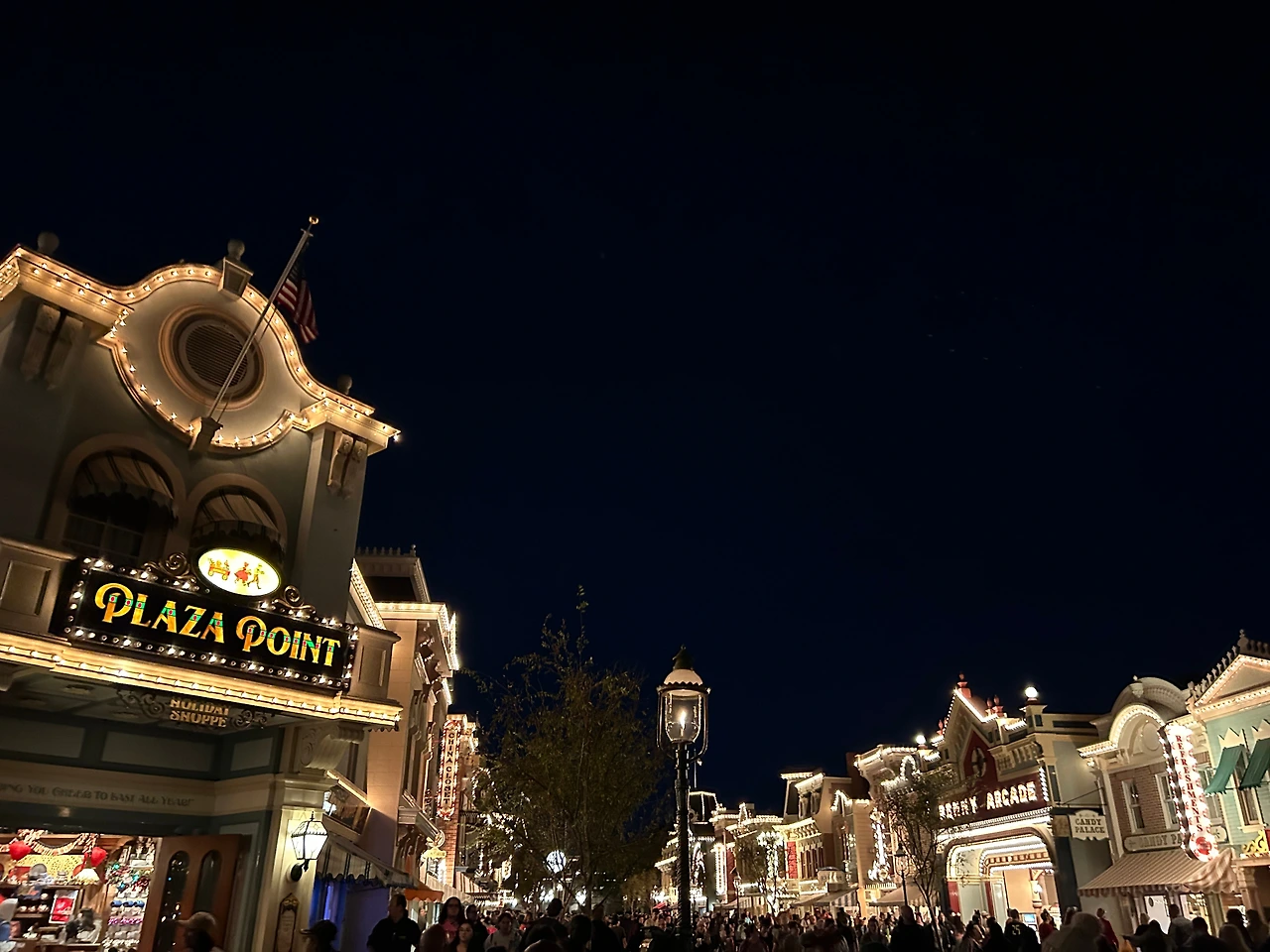 낮에 지나친 상점들도 저녁에 조명을 켜니 색다른 느낌이었다. 늦은 시간에도 LA 디즈니랜드에서의 시간을 즐기는 사람들로 가득했다.