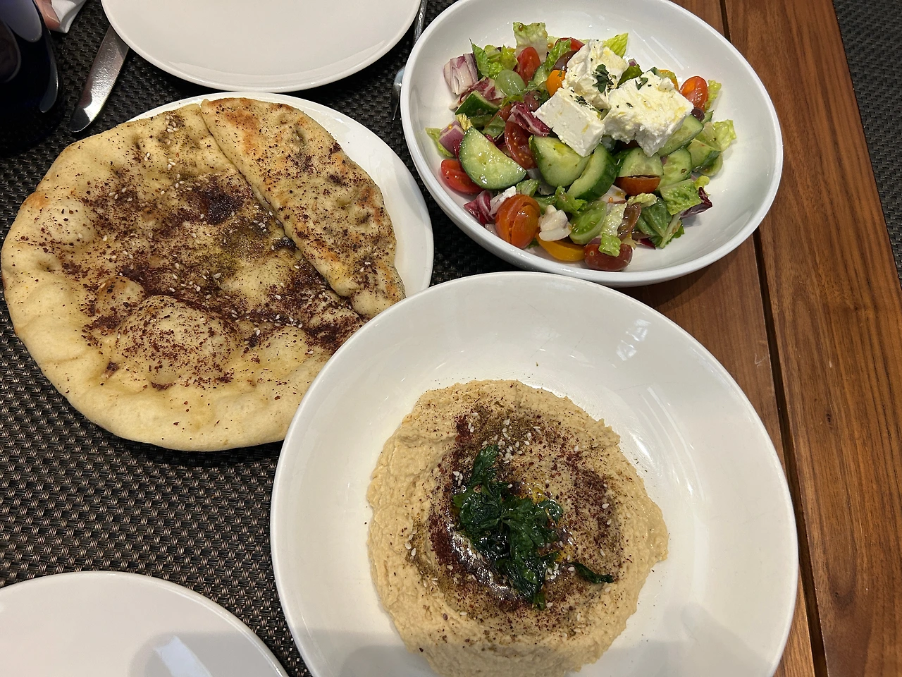 부담 없이 가볍게 먹을 수 있는 메뉴로 후무스, AUTUMN 샐러드를 주문했다. 신선한 채소, 부드러운 치즈의 식감이 조화를 이루었다. 담백한 후무스를 쫄깃한 플랫브레드에 얹어 먹으니 건강해지는 느낌이었다.