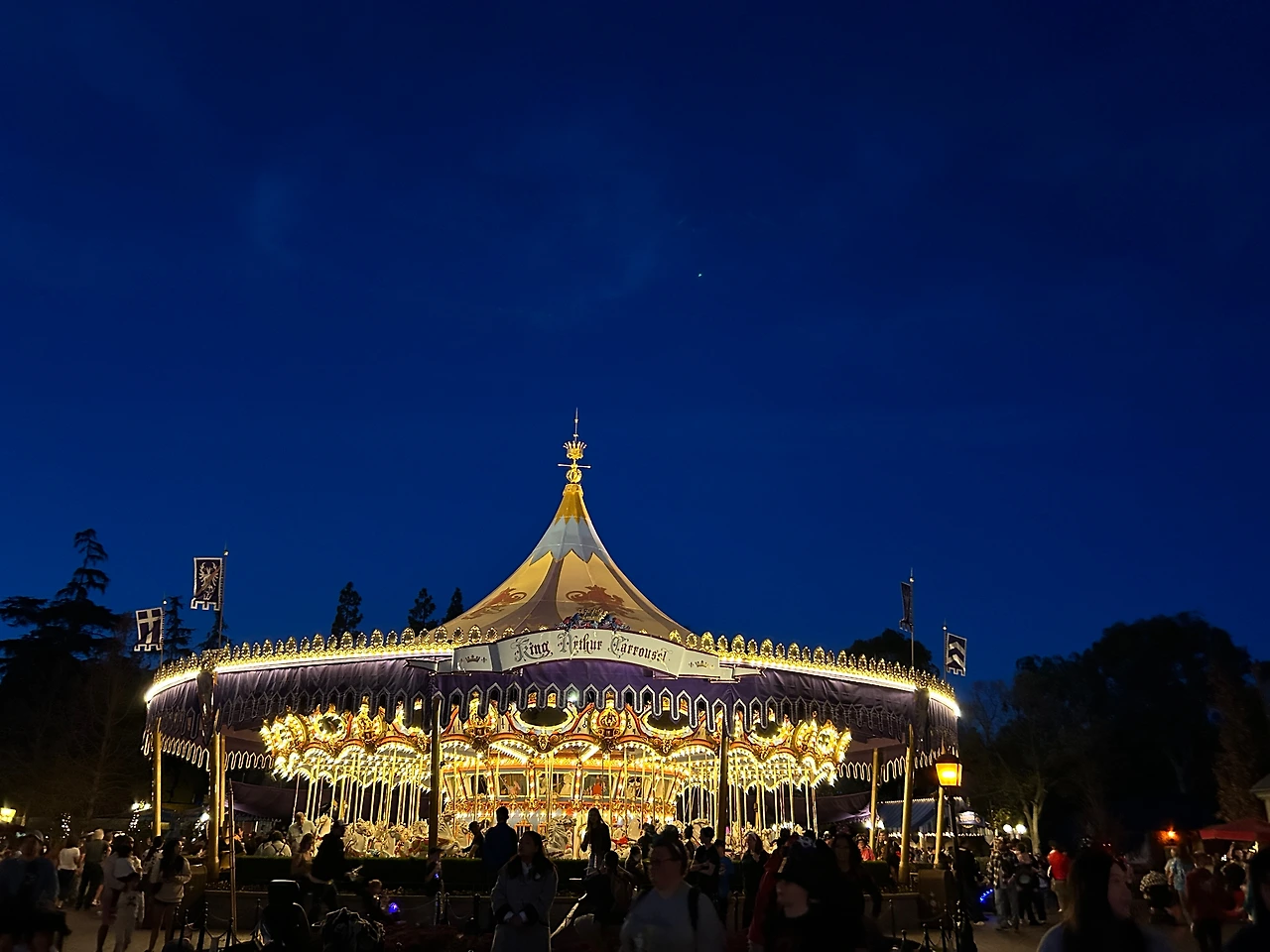 해가 지고 나면 King Arthur Carrousel의 조명으로 낭만적인 분위기가 연출된다.