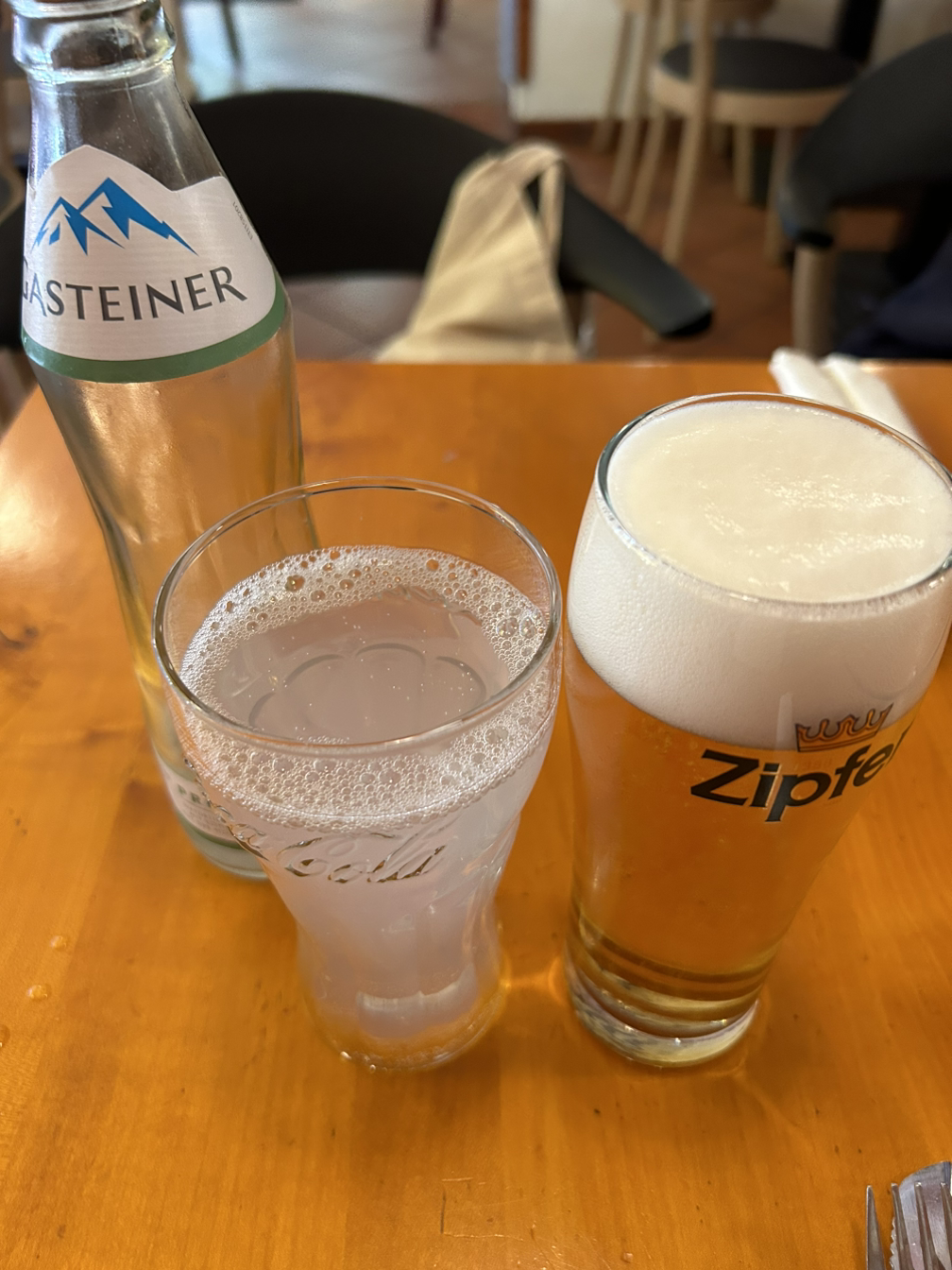 함께 곁들인 음료는 오스트리아 지퍼(zipfer) 맥주와 가스테이너 탄산수.