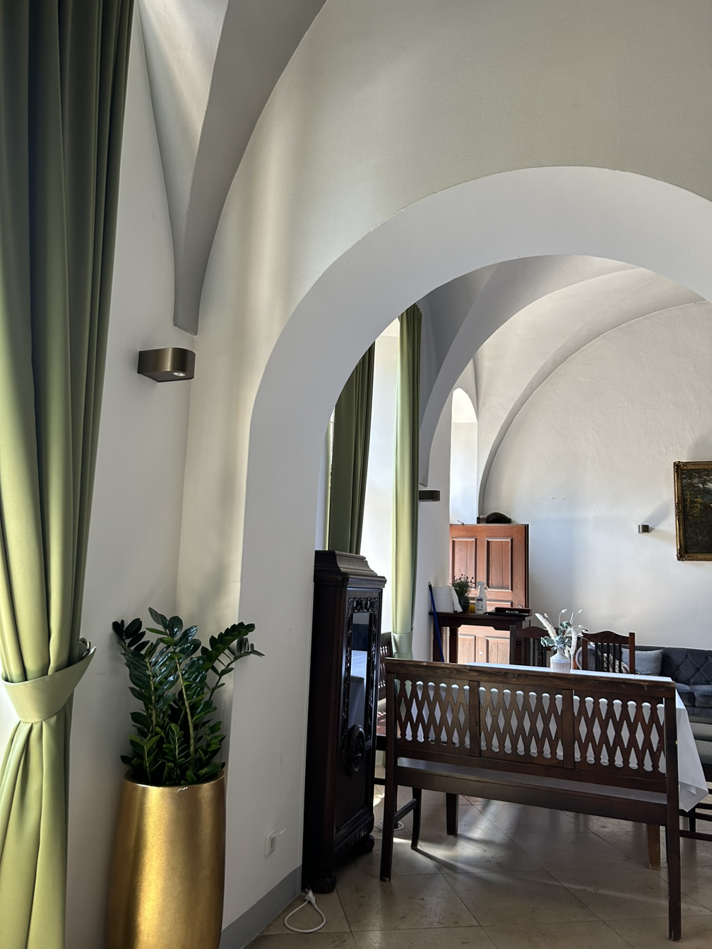 창문을 통해 자연광이 들어와 아름다운 조각과 그림이 더 돋보인다.