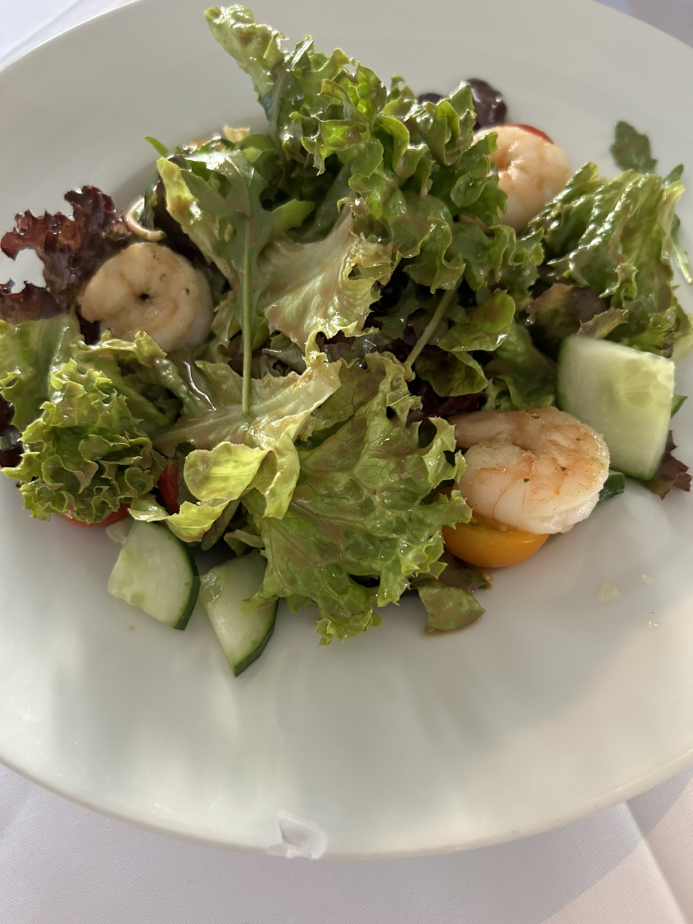 새우가 들어간 샐러드. 가격이 저렴한 편은 아니었지만 신선한 채소를 먹을 수 있어 좋았다.