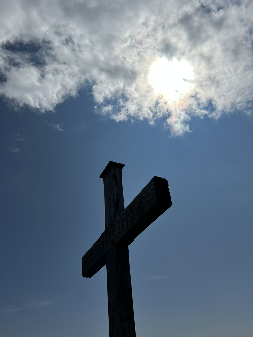 케이블카 정류장에서 내려 멀리서 작게 보이는 십자가를 보면서 트레킹을 시작해 십자가 앞에 도착하자 성취감이 들었다.