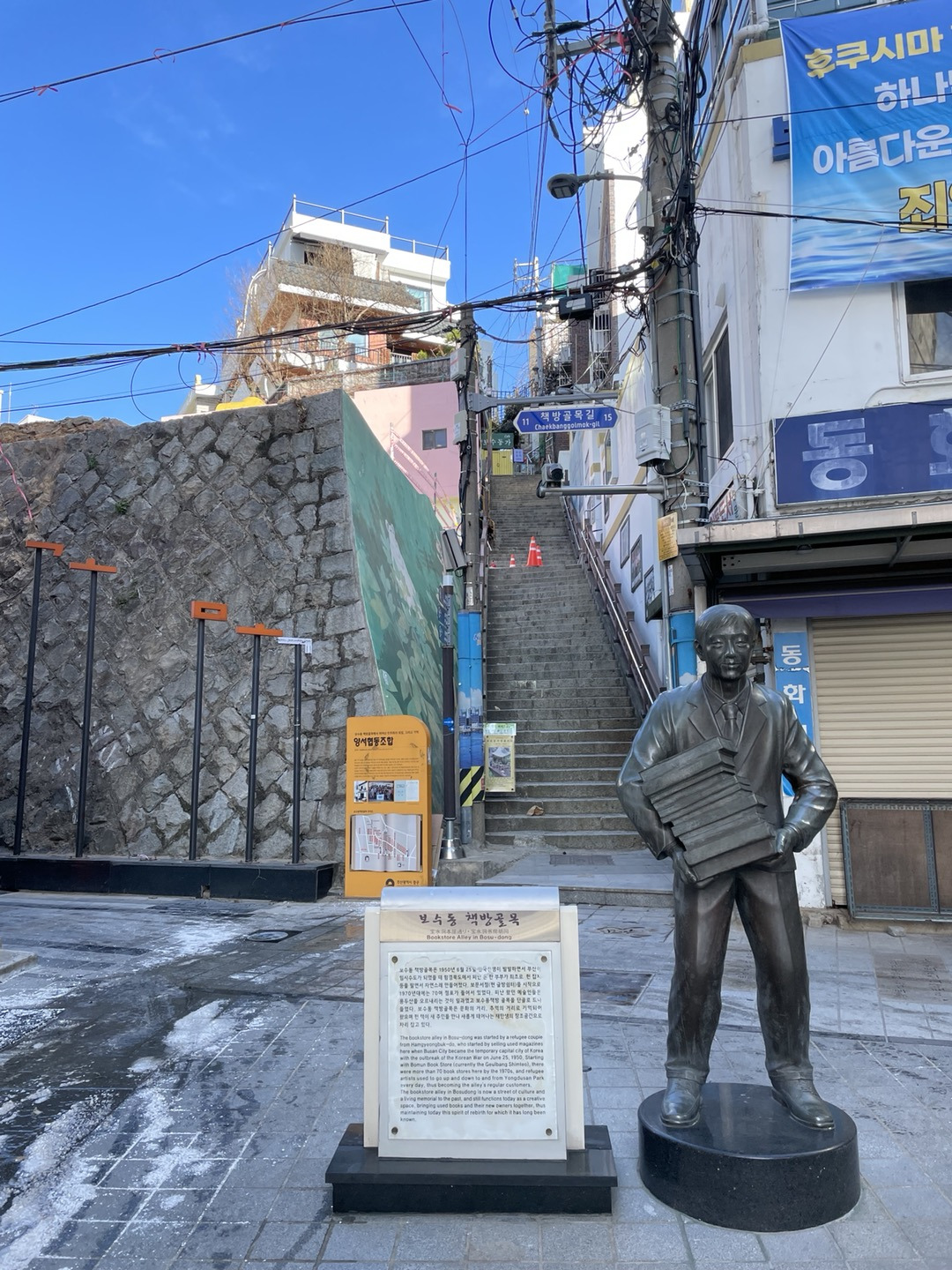 보수초등학교 역에 도착해서 보수동 책방골목으로 들어왔다. 뭔가 과거의 느낌이 물씬 나는 동시에 약간의 어수선함도 있었다. 하지만 좋은 글귀들도 많고 책방을 운영하는 할머니 할아버지들의 진심 덕분에 좋은 감정이 전달된 공간이었다. 중간에 한 서점에 들러서 슬램덩크 만화책 한 권을 샀다. 이번에 영화로 개봉해서 확장판으로 신간이 나온 것 같았다. 뭔가에 이끌린 듯 한 권을 샀는데 사장님이 너무 고마워하셔서 싸진 않은 값이었지만 나도 기분이 괜스레 기분이 좋아졌다. 옛날 만화책이나 소설들을 좋아하는 사람이라면 한 번쯤은 가볼 만한 곳이라는 생각이 들었다. 난 오전 일찍 갔기 때문에 반 이상이 열지 않은 서점들이었다. 그래도 볼 건 다 봤다고 생각해서 큰 아쉬움 없이 발걸음을 옮길 수 있었다.