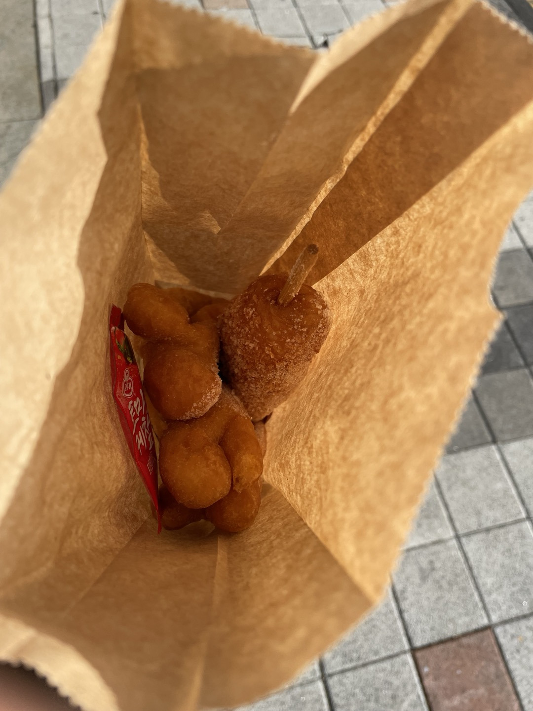 다음 행선지인 흰여울문화마을로 걸어가는 길에 꽈배기 집이 있었다. 처음엔 지나쳤는데 아무리 생각해도 못 참겠어서 그냥 들렀다. 꽈배기 3개랑 핫도그 1개를 먹었다 전부 찹쌀로 만든 거였다. 갓 만든 게 아니었음에도 불구하고 진짜 맛있었다. 처음으로 부산에서 사 먹는 간식이었다. 진짜 미소 지으면서 먹었다. 그렇게 계속해서 발걸음을 옮기는데 손이 너무 시려서 결국 추위에 굴복하고 장갑을 착용했다. 장갑을 끼면 휴대폰을 수시로 확인하기엔 불편했지만 훨씬 손가락이 편안해질 수 있었다...