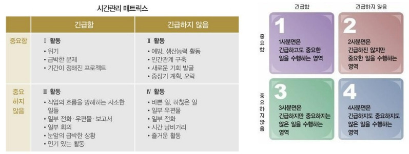 시간을 소중히 여기기 때문에 배움의 때를 놓치지 않고 열심히 하나씩 배우고 있다고 생각했는데, 시간 사용법을 숙지하는 게 먼저다. 이젠 핑계 그만 대야지. 아이들과 시간 관리 매트릭스를 공유하면서 미션도 같이 만들었다.