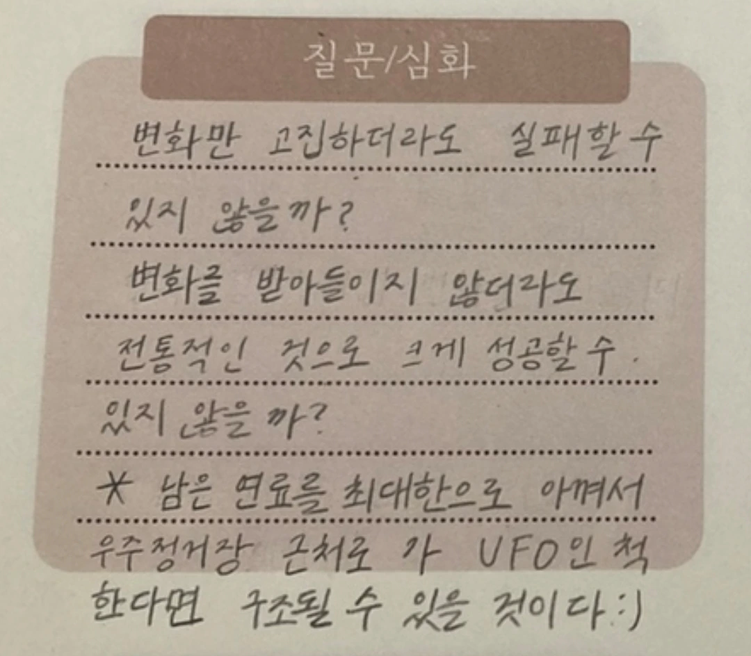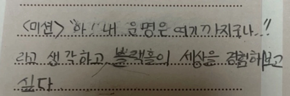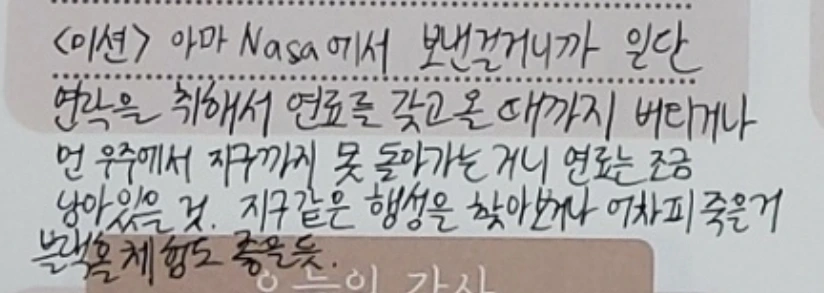 "먼 우주를 여행하다 더는 지구로 돌아갈 연료가 없다는 것을 깨달았다면 어떻게 할래?"