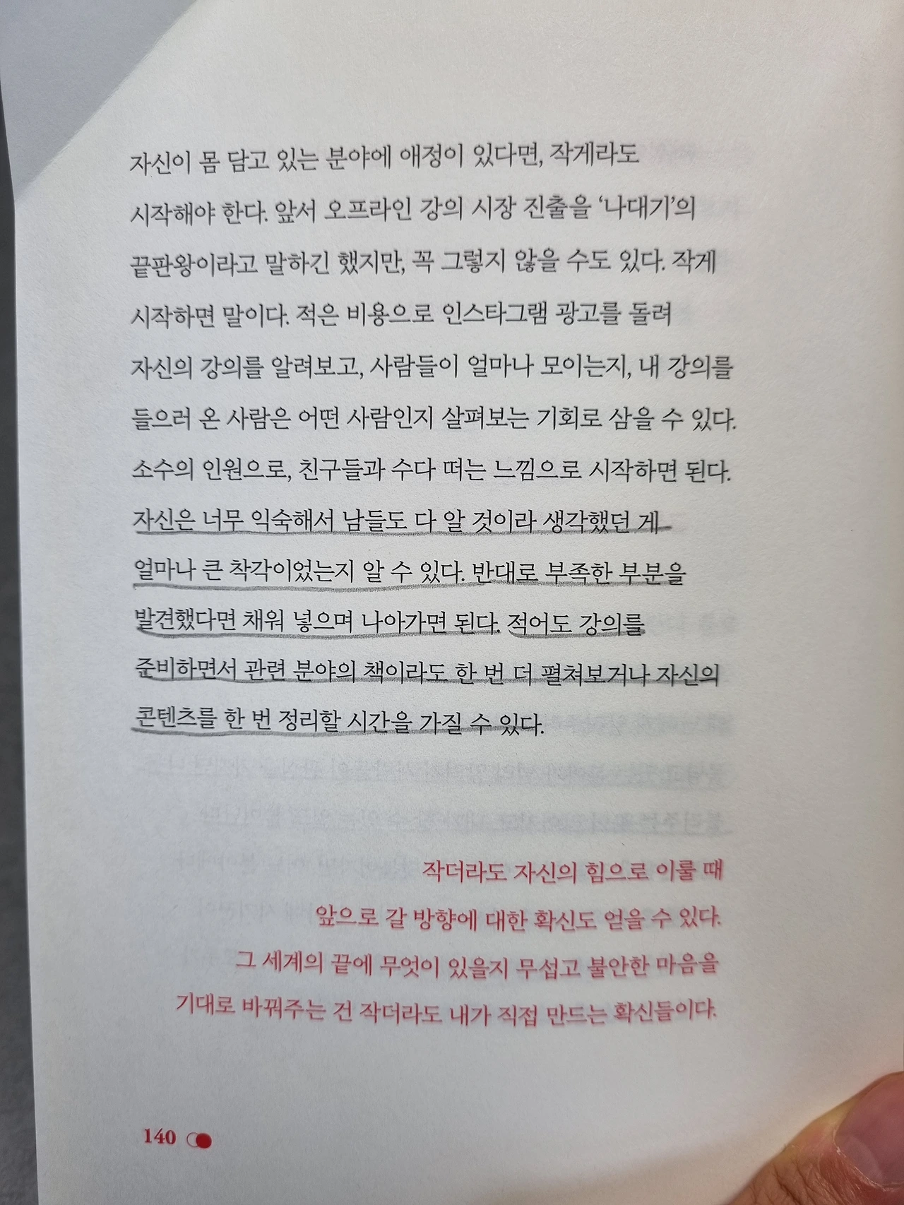 자신이 관심 있는 분야라면 '이미 하고 있어야 한다'라는 구절을 읽은 적이 있다. 의욕보다 행동이 앞서고 있다는 의미이다. 지인들이 내게 뭘 가장 많이 묻는지 떠올려보면 책과 영어, 혹은 외국어 공부와 학습법 전반에 관한 코칭. 후배들에겐 교직생활 꿀팁을 알려줄 수 있겠다. 너무 경력이 많은 사람들에겐 웬만한 일이 다 별일 아닌 것이 되므로 10년 차를 막 넘긴 나만이 도울 수 있는 것이 있을 것이다.