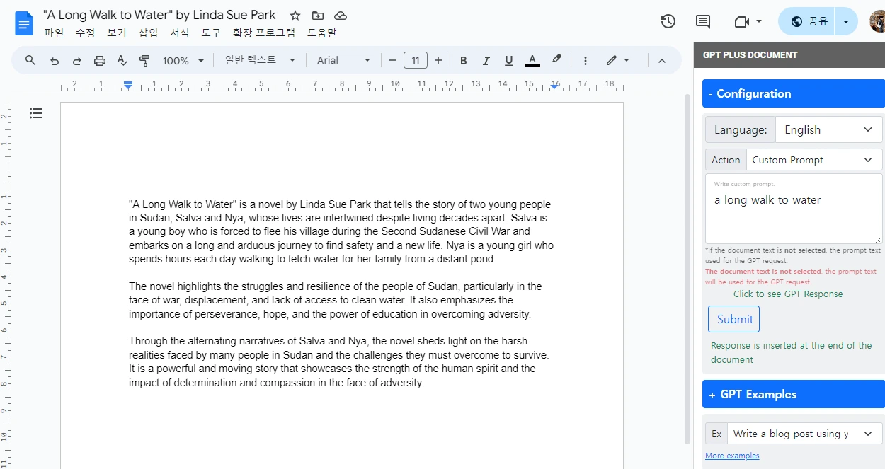 그림 1. 질문 연속체 개념 / 그림 2. Google Doc에서 AI를 활용해 블로그 포스팅을 작성한 정보
