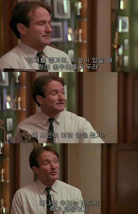 마녀는 젊음은 영원하지 않으니 '할 수 있을 때 결혼하라'는 대목이 영 맘에 와닿지 않았는지 marry(결혼하다)를 merry(즐거운)으로 잘못 읽는다. 행복할 수 있을 때 행복하라. 오늘은 별다른 주문 없이도 금세 잠들 수 있겠다고 생각한다. 키팅 선생님은 카르페 디엠이라는 말 외에도 몇 가지 조언을 해주었는데 그게 장미 봉오리였는지 일본식 다리가 드리워진 호숫가의 수련이었는지 기억은 잘 나지 않지만 여하튼 그가 몹시도 그리운 밤이었다.