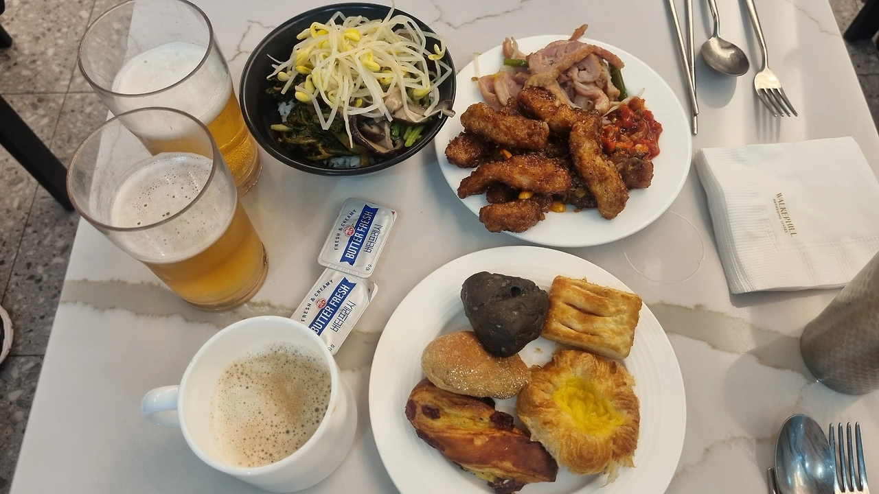 (라운지 앞에 늘어선 숨 막히는 줄을 보고 갈까 말까 고민했지만 KFC에서 맥주 한 잔 마시는데 30분은 기다려야 한다는 사실을 알고 '역시 사람들이 저러는 데에는 이유가 있다'는 결론을 내림)