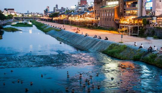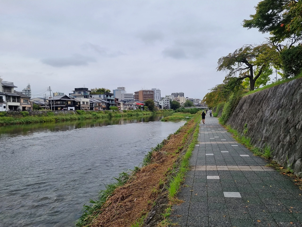 교토시를 흐르는 가모강은 여행이 끝난 지금도 일상의 한가운데를 가로질러 흐른다. 가모 강가를 산책하는 일은 관광객인 나에게도 주민에게도 분명 큰 기쁨일 것이다. 잠시 걷는 동안 산책하거나 달리는 사람들이 몇몇 지나갔다. (한국인 관광객이 남긴 듯한 맵기로 유명한 라면의 컵라면 용기 등이 눈살을 찌푸리게 한 걸 제외하곤, 환상적인 고즈넉함.)