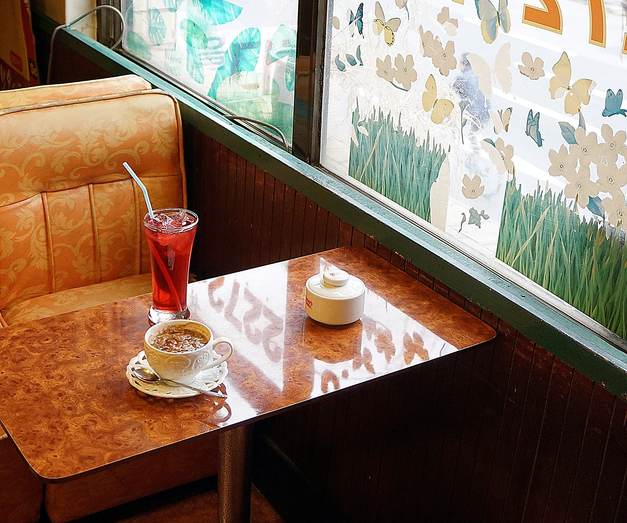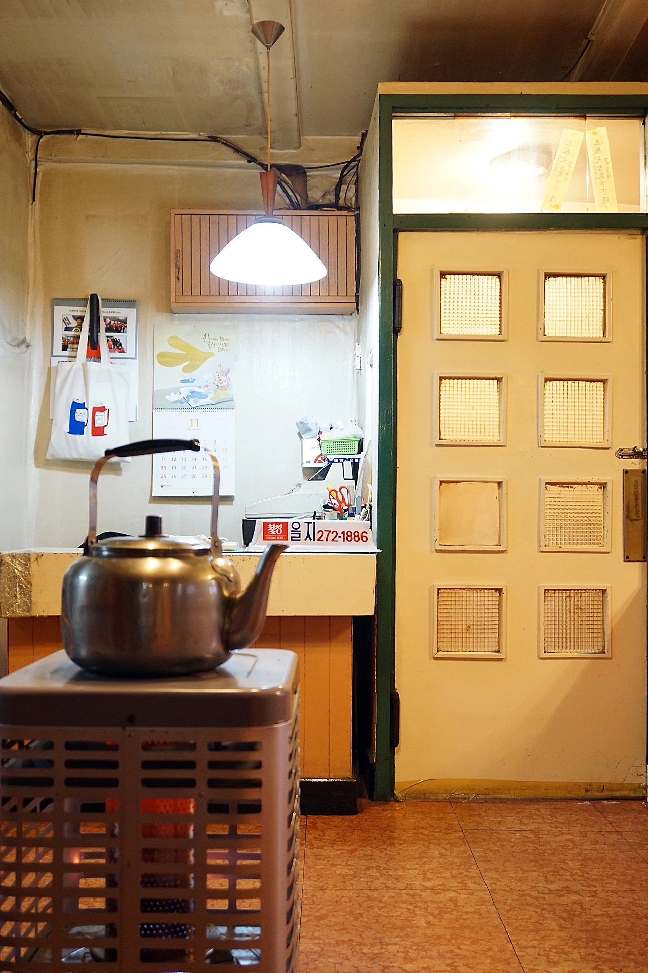 “어서 오세요! 혼자 오셨어?” 여주인은 기분 좋은 ‘솔’ 음색으로 반긴다. 공구가게가 줄을 선 을지로 3가의 오래된 다방. 좁은 계단 끝의 나무문을 열면 석유난로의 훈훈한 냄새가 먼저 반긴다. 처음부터 그 자리에 있었던 주황색 가죽의자와 낡은 테이블, 오래된 조명만큼 나이 든 텔레비전, 손때 묻은 카운터(이 물건은 이제 구하기도 어렵다.), 물을 끓이는 주전자의 수증기. 운이 좋으면 빛이 들어오는 창가자리에 앉을 수 있다. 시간이 멈춘 이 공간, 그러고 보니 색깔 테이프가 갈라진 유리창의 세월을 용케 붙들고 있었다.