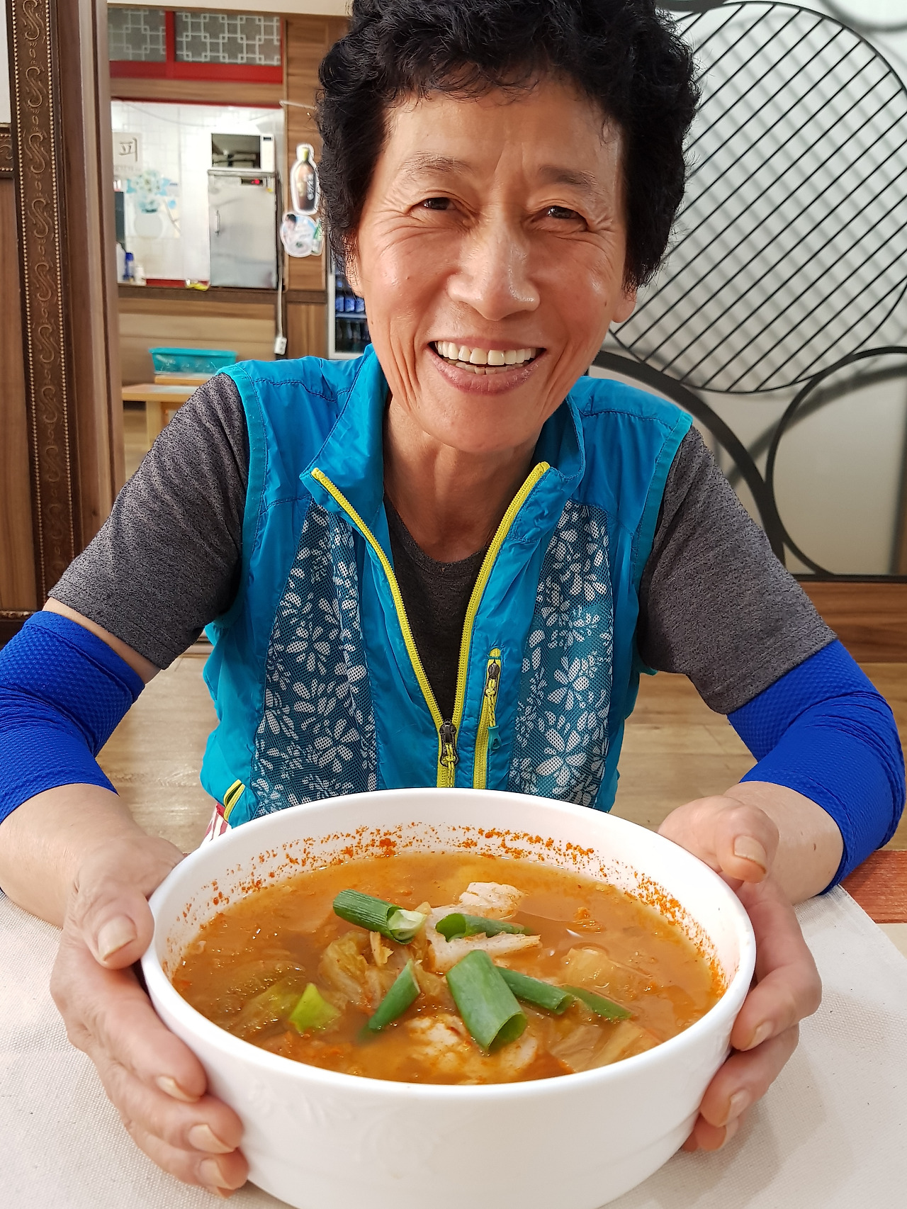 손 큰 주인 할머니(김금희, 65세)는 물크덩한 곰치 한 덩이를 끓는 물에 넣는다. 다음에 소금 조금, 곰삭은 김치 한 국자를 툭 털어 넣는다. 보글거리며 살이 하얗게 익으면 그릇에 담는다. 그 위에 파를 뿌리면 끝.