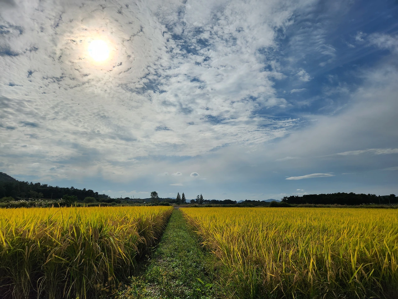 작열하는 태양, 그의 따가움을 적당히 가려주는 구름의 무리, 들판을 경건하게 물들인 잘 익은 벼이삭, 그 사이를 유영하는 바람의 평온한 몸짓.