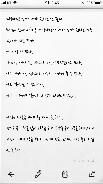 열 줄을 겨우 넘긴 짧은 일기는 훈련소에서 편지지 한 장 정도는 가뿐히 넘기는 양의 일기가 되었다. 그리고 그때를 겨우겨우 버티며 새긴 일기는 습관으로 남아 지금도 이따금씩 하루의 감상을 적어 나만의 창고에 고이 접어놓는다.