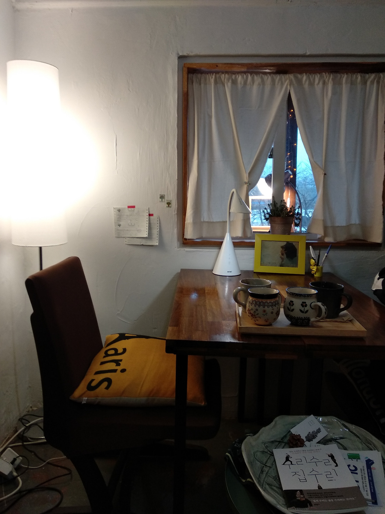 사장님의 모임 멤버들이 불편할까 봐 아쉬운 인사를 나누고 급하게 나왔는데 아차, 챙겨주신 신문과 무가지들을 두고 나온 게 생각났다. 다행히 마을 입구까지 갔을 때 일 때문에 온 전화로 남편은 차를 세웠고 나는 책방까지 달려가 그것들을 챙겨 왔다. 저녁식사를 하다가 다시 마중을 나오게 된 사장님은 나의 사진을 찍었다. 사진은 다음에 잘 나왔는지 확인하러 오라고 하셨다. 이렇게 다시 한번 방문해야 할 계기가 생겼다. 차를 타고 마을을 빠져나오는 내내 뛰어서 턱 끝까지 차올랐던 숨이 가라앉을 준 몰랐고 여운 또한 사라지지 않았다. 다음에 혼자 와서 조용한 방에서 졸다 가라는 약속. 사진을 확인하러 다시 들리라는 먼길을 가야 하는 이유가 계속 마음속에서 두근거렸다.