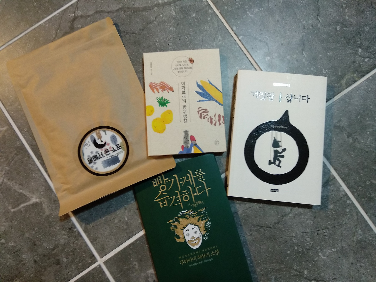-달에서 온 소포, 이파브르의 탐구생활(전원생활을 하고 싶은 사람들에게 추천한다고 하셨다.)을 구매했다. 비밀의 방에서 아이가 고른 중고책 두 권도 구매했다. 빵가게를 습격하다 와 거짓말 삽니다.