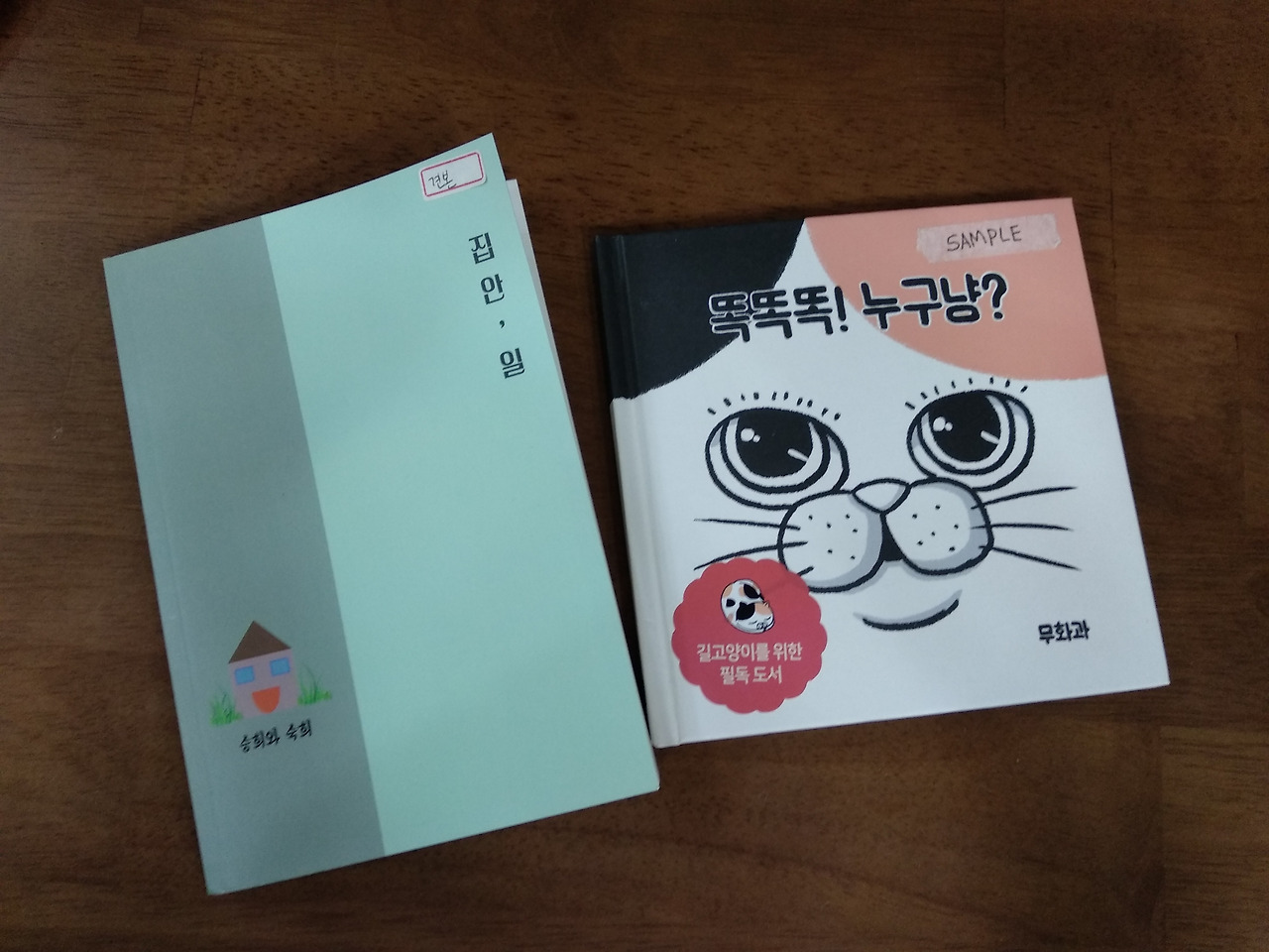 -'집안, 일'이라는 승희와 숙희라는 자매가 쓴 책. 언니가 아이를 낳은 후 아기가 자라는 사진이 군데군데 있다. '똑똑똑! 누구냥?'은 길고양이 시선에서 바라본 만화. 무화과라는 작가가 길고양이들을 입양한 주변인들을 보며 아이디어를 얻었다 한다.