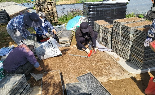 우리 집은 올해 800여 개 정도의 못자리 판을 만들었다. 가로가 60cm에 세로가 30cm 정도 되는 얄팍한 판이 모판인데, 여기에 벼가 자라기 좋은 흙을 담고 그 위에 쌀을 심는다. 이 단순한 사실을 실행하기 위해선 치밀한 계산과 노력이 필요하다. 국립농업기술센터의 종자연구센터에서 판매하는 종자 중, 심을 곳의 기후와 추후 판매 계획에 맞춰 알맞은 종자를 구입한다. 농협에서 이 볍씨를 열탕소독해 주는데, 이 과정을 통해 볍씨를 소독하고 발아율을 안정적으로 유지할 수 있다. 이후, 모판과 알맞은 상토를 구입해 모판에 상토를 담는다.