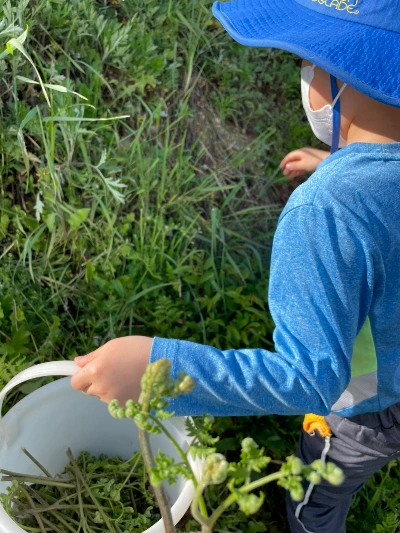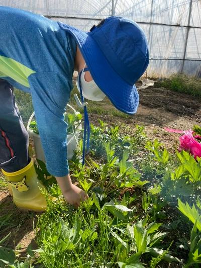 염소에게 풀을 뜯어주다 따라나선 둘째도 제법 엄마를 흉내 내며 통을 가득 채운다. 귀여운 꼬마 농부가 풀 사이사이 숨어있는 고사리를 얼마나 잘 찾는지 칭찬할수록 신이 나서 작은 장화를 신고 더 빨리 뛰어다닌다. 엄지와 검지 두 손가락으로 꼬집듯 꽃나물을 꺾어 들어 올리는 얼굴이 얼마나 사랑스러운지 꽃나물보다 더 예쁜 꽃동이가 아닐 수 없다. 엄마는 나물마다 담겨있는 사연을 풀어놓느라 정신없고, 나는 꽃동이가 귀여워 사진 찍느라 정신이 없다. 엄마는 딸 주려 나물을 뜯고, 딸은 그 아들을 보며 미소 짓는다.