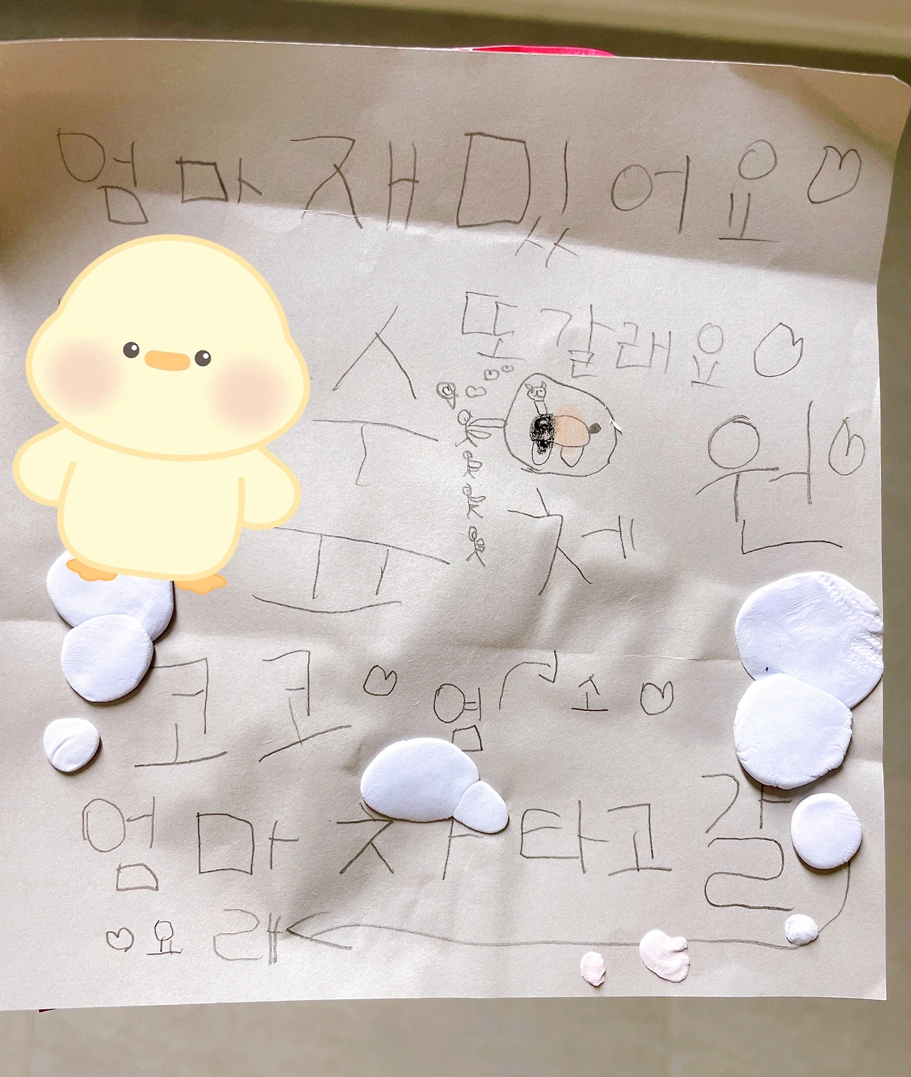 덧) 현장학습에 다녀온 꽃동이 손에 “엄마”라고 쓴 색종이 편지가 들려있다.