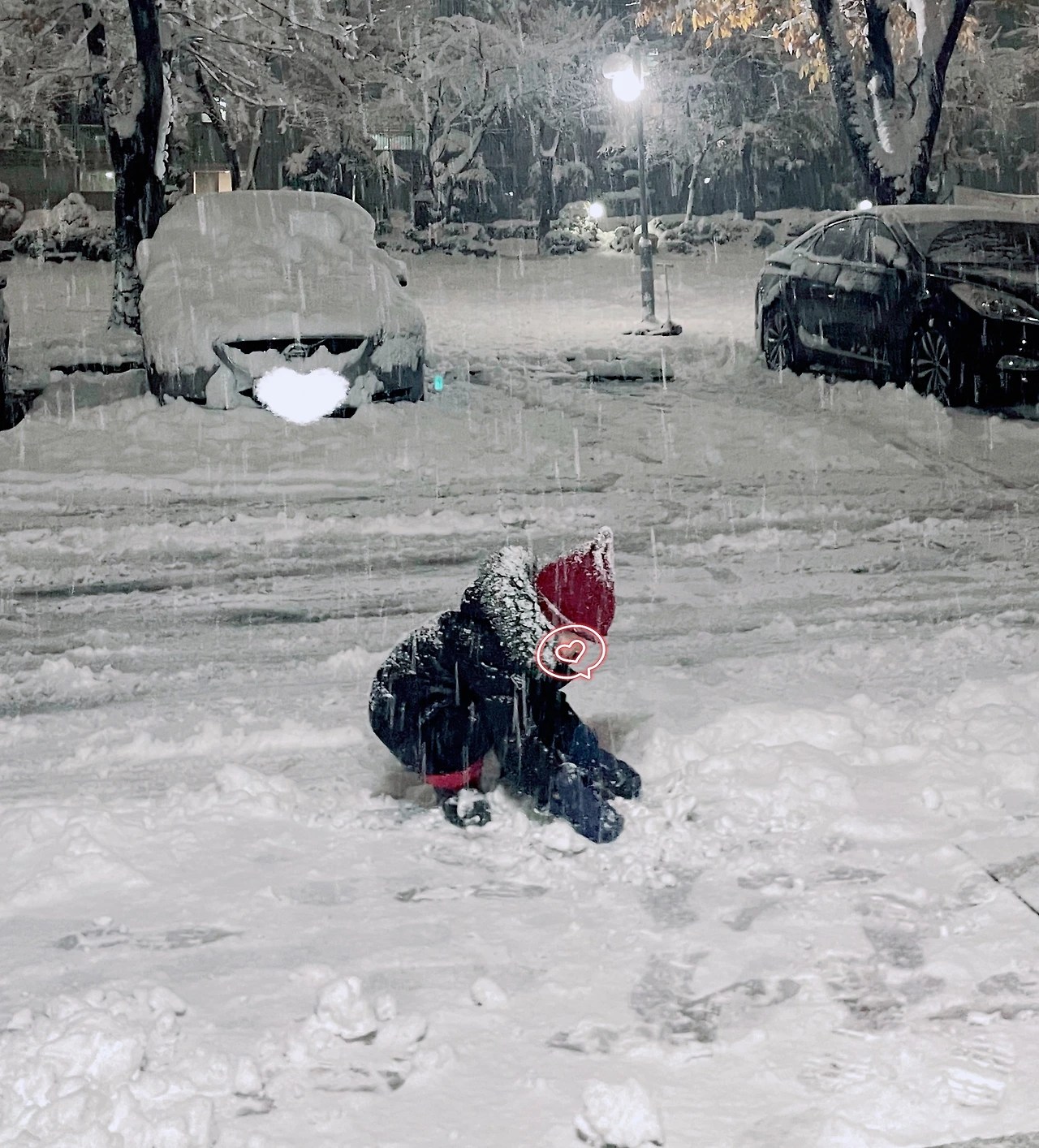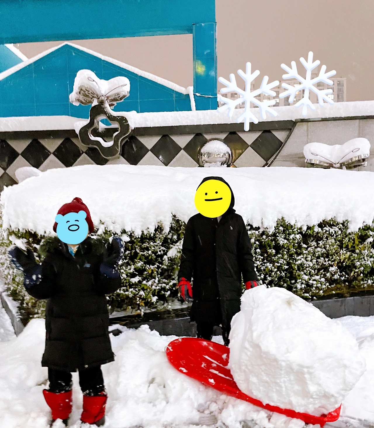 올해 첫눈이면서 동시에 엄청난 눈이 114년 만에 쏟아진 특별한 날이었다. 핸드폰에선 연신 안전문자가 날아왔다. 119가 폭주하니 급하지 않은 연락은 다른 곳으로 하라, 빙판길을 조심하라는 등의 내용이었다. 어른들의 세상은 미끄럼과의 전쟁인데 아이들의 세상은 한없이 신기하고 설레는 날이었다.
