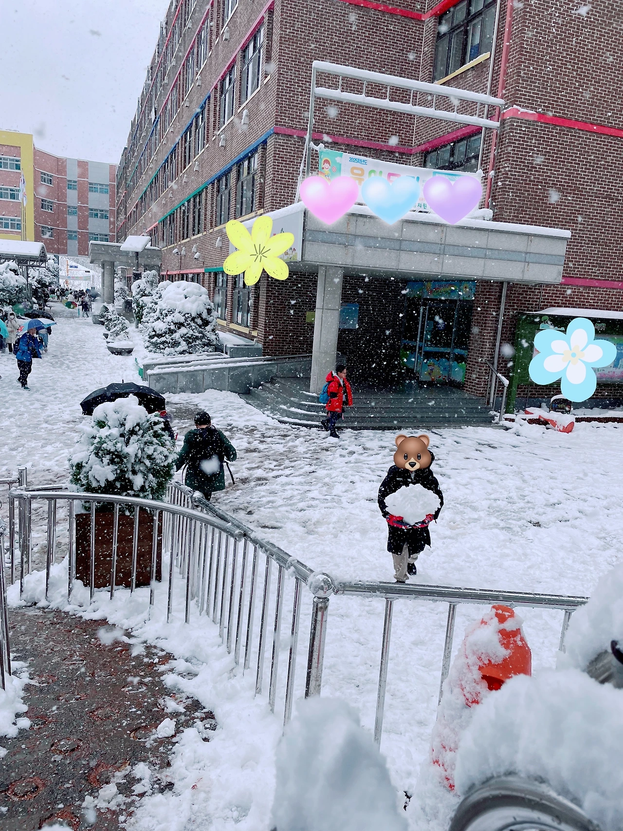 나올 시간이 됐는데 첫째가 왜 이리 늦나, 유심히 입구를 쳐다보는데 저 멀리서부터 커다란 눈뭉치를 들고 오는 아이가 보인다. 얼마 전에 새로 사준 책가방은 이미 흙 묻은 눈으로 더러워져 있고, 비싸게 주고 산 롱패딩은 눈뭉치를 들기 위한 도구에 불과했다. 모자도 쓰지 않고 이미 친구들과 눈싸움을 하면서 이 추위에 땀까지 흘리고 있었다.
