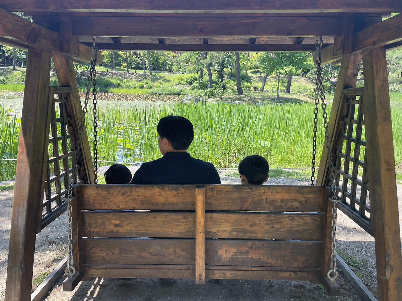 브루더호프 공동체의 장로인 요한 크리스토프 아널드는 그의 저서 『아이들의 이름은 오늘입니다』에서 부모들에게 속도를 늦출 것을 제안한다. “눈 위에 누워서 팔다리를 위아래로 휘젓고, 웅덩이에서 물을 튀기고, 나무를 오르는 일이 얼마나 매력적인지 경험할 기회를 모든 아이에게 주어야 한다”라고 주장한다. 그의 말대로 우리는 아이에게 ‘오늘’을 선물로 주었다. 비가 오는 여름날엔 래시가드를 입고 밖으로 나갔다. 물을 튀기며 미끄럼틀을 타고 모래를 삽으로 푸고, 물길을 따라 달렸다. 처마 끝에서 낙하하는 물줄기 아래 손을 대며 강렬한 힘을 느끼고 바람에 떨어진 나뭇가지들을 한쪽으로 모아서 인디언 집을 만들었다. 해가 쨍한 날엔 산에서 비눗방울을 불며 숲 탐방을 했다. 아이는 스스로 무한동력 발전기를 돌리며 넘치는 체력을 발산했다. 남편과 나는 어려운 결정을 함께 내리며 서로 양보하고 포용하는 기쁨을 누렸다.