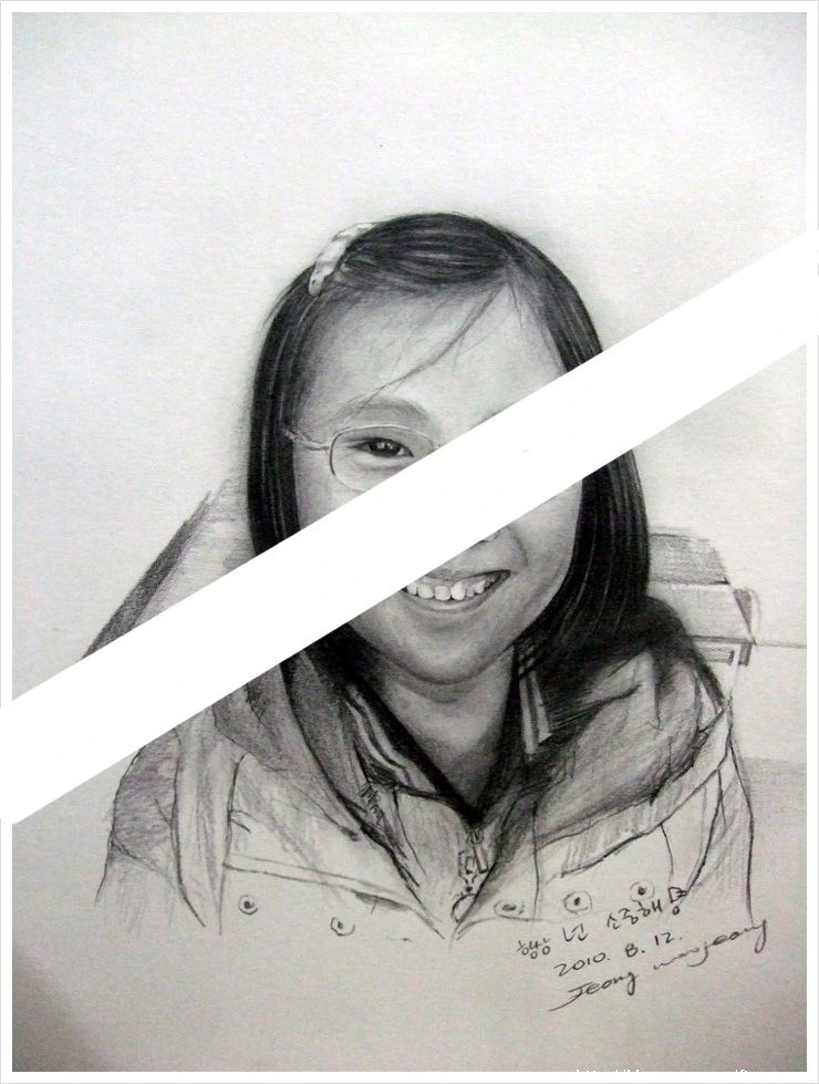 그렇게 그린 우리 반 아이. 굉장히 수줍음도 많고 참 조용했던 아이였다. 그런 아이가 하교 전 사진 찍자는 내 앞에서 정말 환하게 웃어주었다. 어느 때보다 더욱 빛나게. 그 눈 속에 또다시 내 모습도 함께 있었다. 잇몸이 환하게 드러난 아이의 미소가 너무 예뻐 기분 좋게 그렸다.
