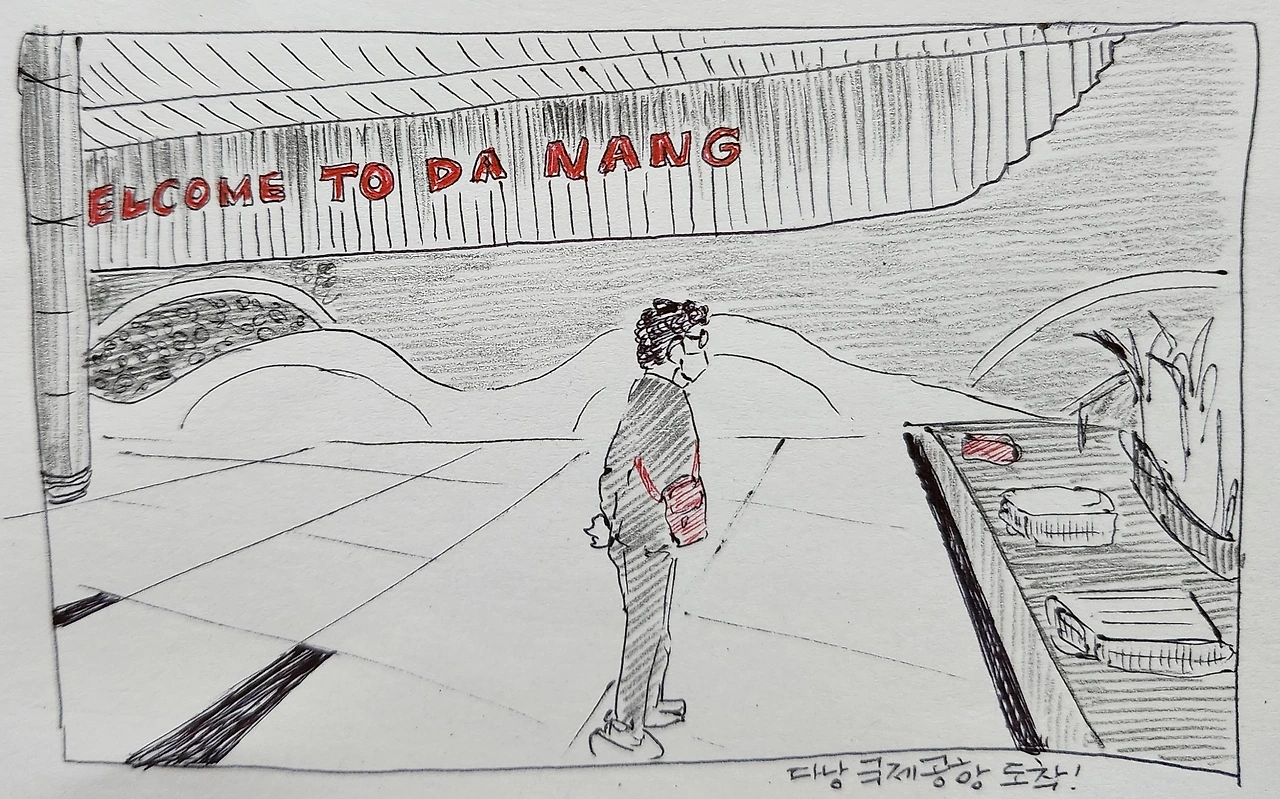 비행기모드로 해놓은 휴대폰의 시계가 어느 순간 우리나라보다 2시간이 느린 다낭시각으로 바뀌어 있었다. 그리고 다낭시각 12시 40분, 다낭 국제공항에 도착했다. 한국이었으면 새벽 2시가 넘은 시각이었다. 좁은 좌석에서 제대로 잠도 못 주무셨을 엄마가 걱정되었다.