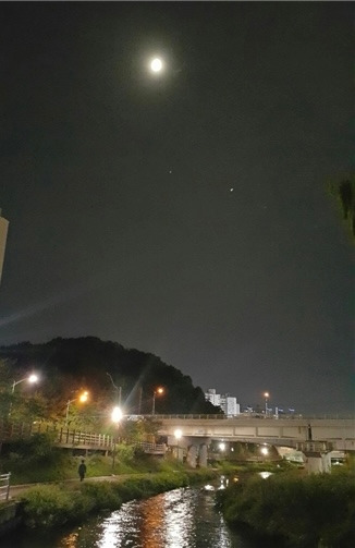 하늘을 향해 휴대폰 카메라를 들었다. 찰칵. 셔터를 누르고 찍은 사진을 확인해 보았다. 그런데 아까는 전혀 몰랐던 별이 보름달 옆에 나란히 있었다.