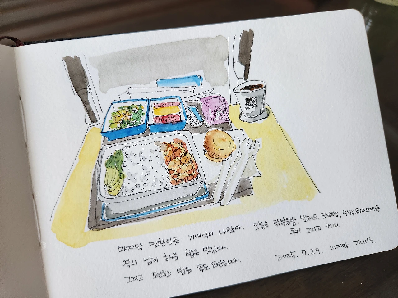 마지막 만찬인 듯 기내식이 나왔다. 한 입 한 입 천천히 음미했다. 커피로 마무리하니, 편안해진다. 3일 동안 만난 음식들 모두 비싸고 대단하진 않았지만, 나만을 위한 식사들이었다. 이 또한, 여행에서 나를 다독이는 방법이었다.