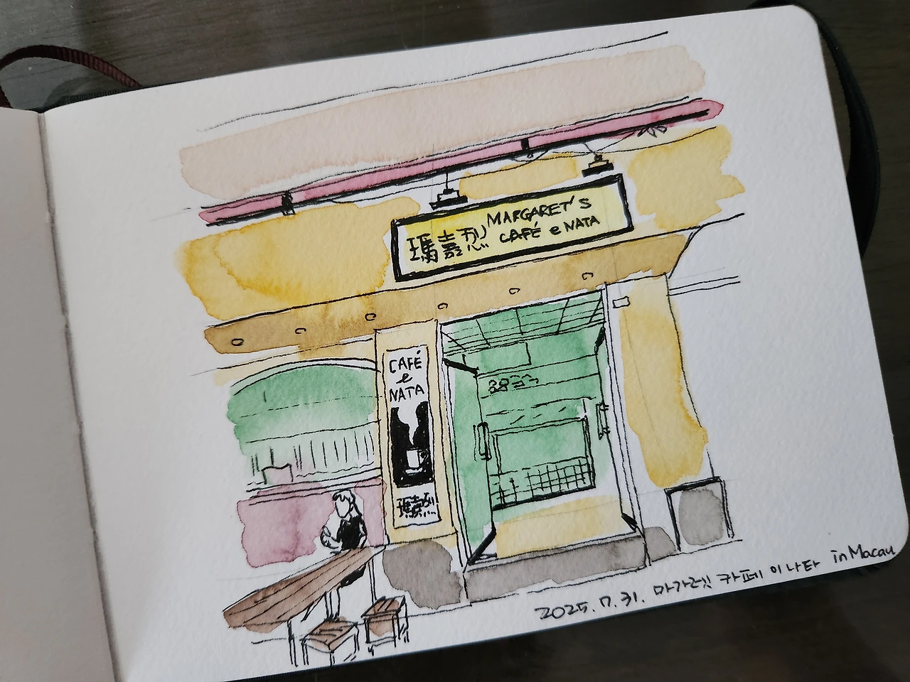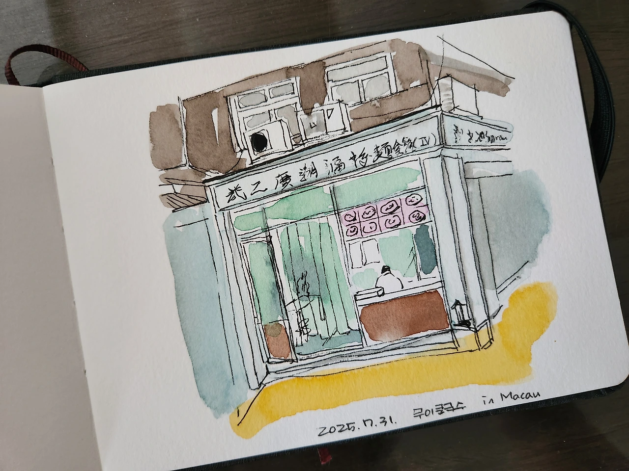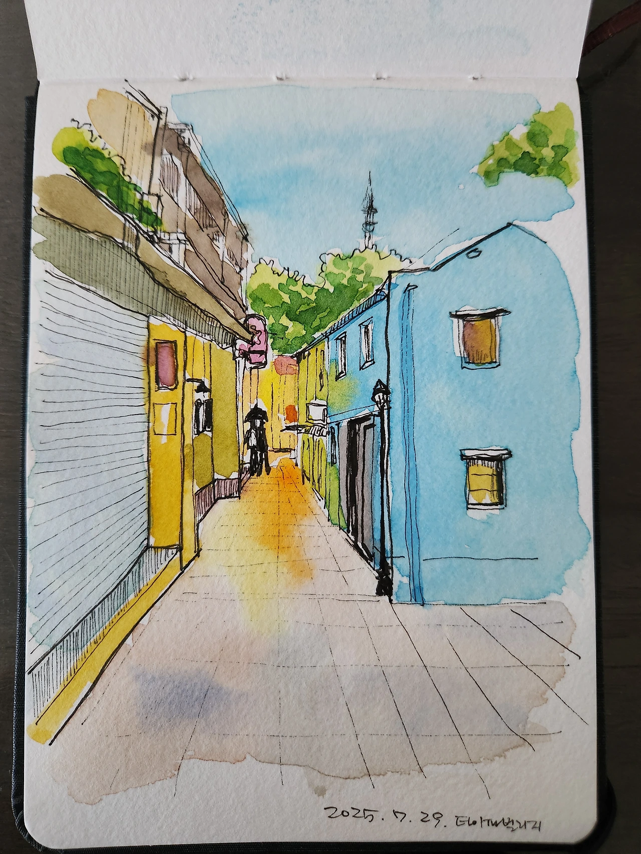 이번 여행의 마무리로 펜 스케치만 한 드로잉북에 채색을 한다. 미처 그리지 못한 장면들을 추가로 그린다.