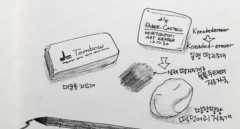 그림을 그릴 때 필요한 도구를 이야기하라 하면 가장 기본적인 4b연필과 지우개를 떠올릴 것이다. 연필과 지우개는 바늘과 실처럼 따라다니는 단짝이다.