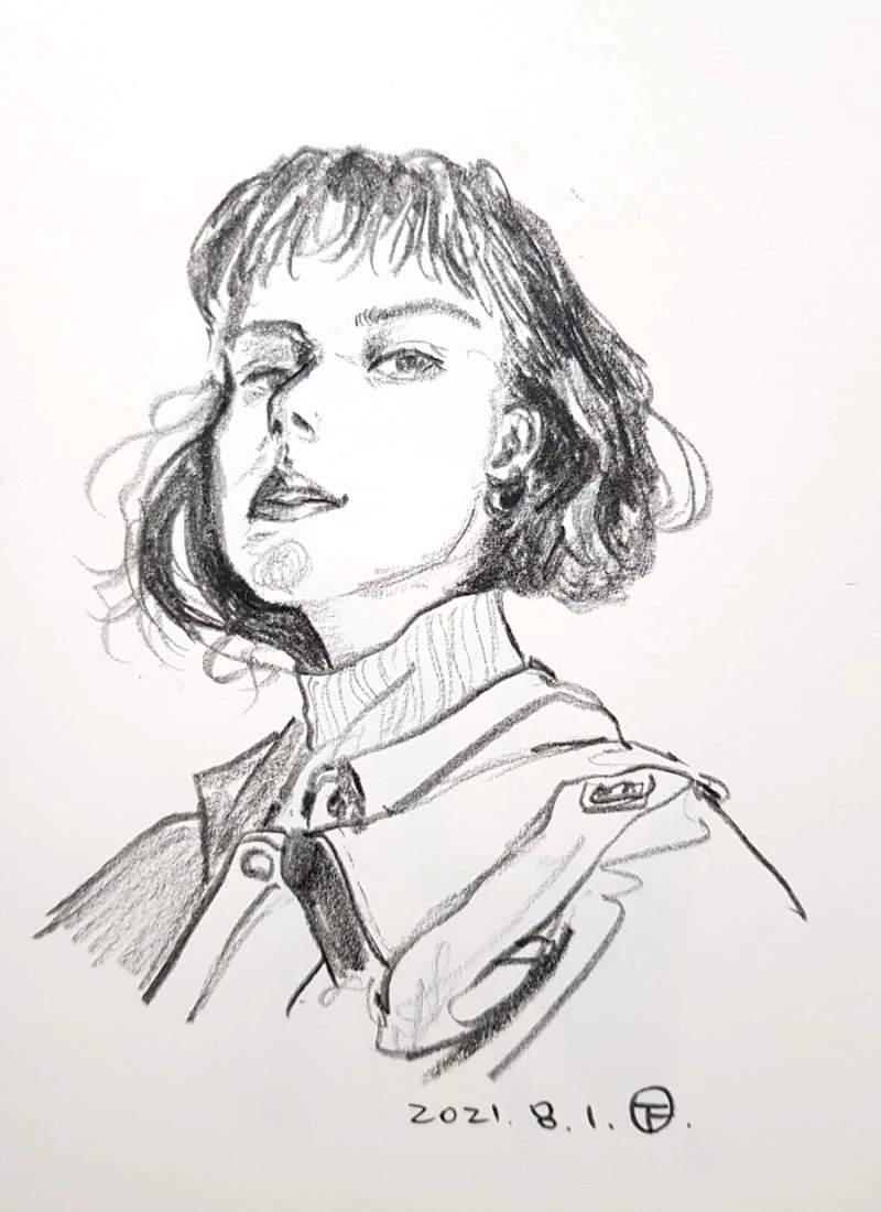 조금 찌그러지면 찌그러진 대로, 참고한 대상과 달라져 있어도 있는 그대로 결과물을 바라보았다. 지우개를 써도 좀 더 완벽하게 다듬을까 하는 생각조차 들지 않았다. 그림의 퀄리티와 별개로 지우개를 쓰지 않으면서 나는 그림에서 자유를 느꼈다. 지우개로 얻는 자유도 있지만 지우개를 떠나보냄으로 얻은 자유가 나에게는 더 컸다.