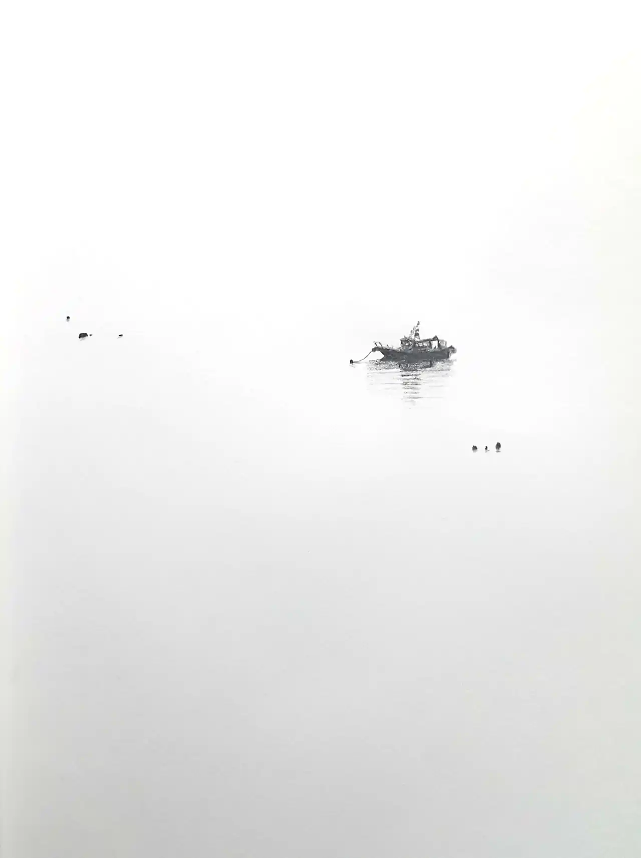 온통 하얗기만 한 공간 속에서 바다라는 걸 알려준 건 저 멀리 보이는 점 하나, 작은 조각배였다.