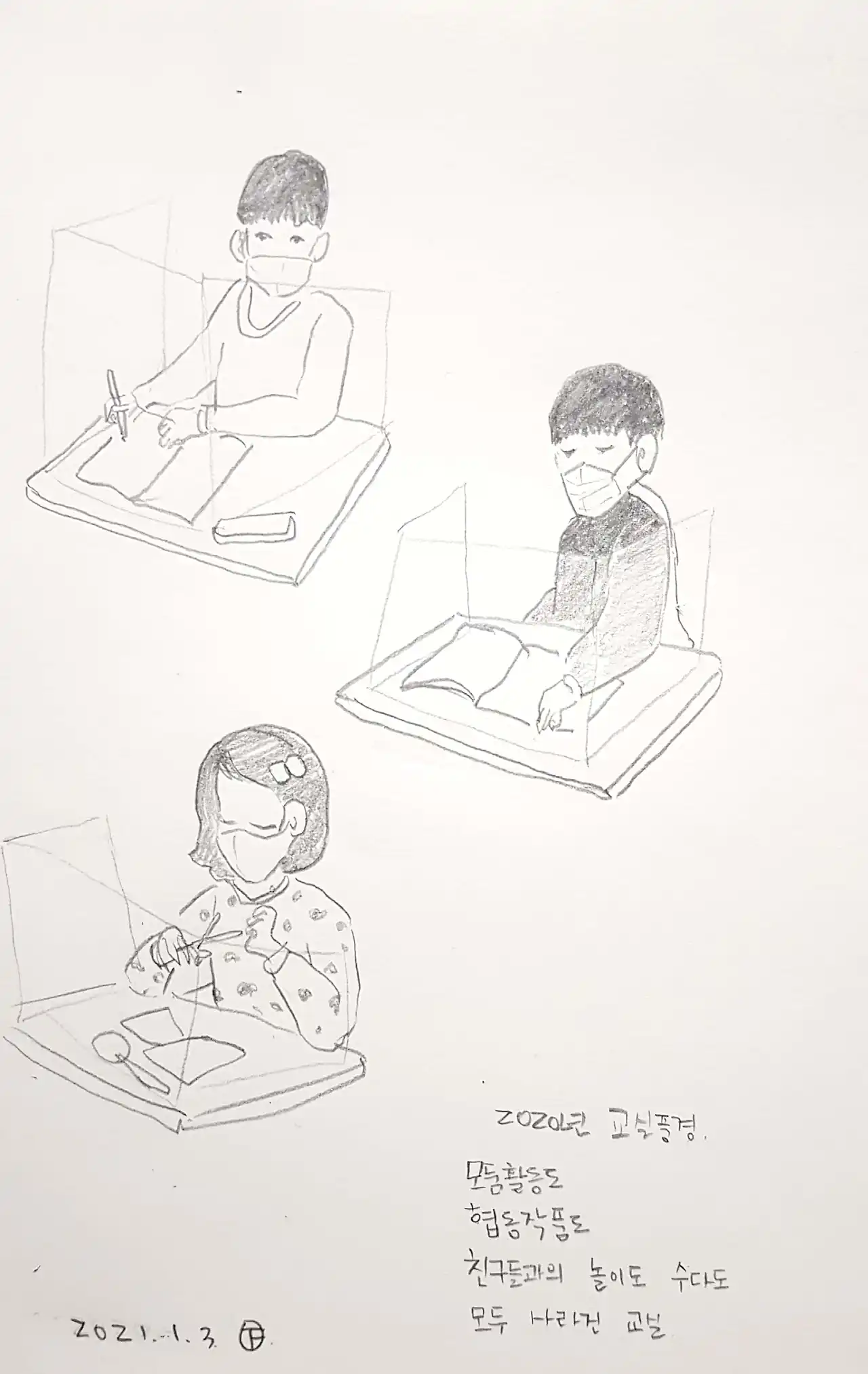2020년 2월 시작된 코로나로 그 해 3월 2일, 아이들은 개학을 하지 못했다. 2020년 학교는 모두 처음 겪는 일로 가득했다. 아이들은 학교에 오지 못했고 교사는 출근해 방역을 하고 초긴장상태에서 지냈다.